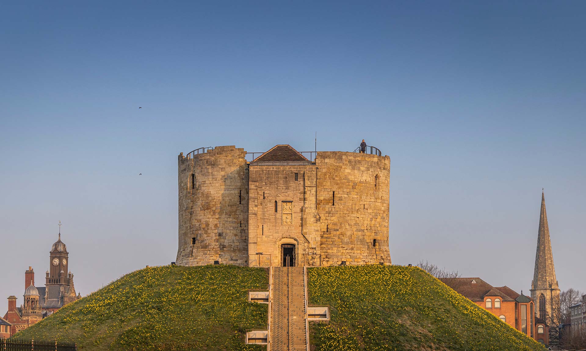 Monumentální věž Clifford’s Tower, která stojí na vysokém hliněném valu, je největší dochovanou stavbou středověkého královského hradu York. Kamenná věž byla postavena v polovině 13. století, ale od požáru v roce 1684 stála jako ruina bez střechy. Věž stojí vedle tří památkově chráněných budov seskupených kolem Yorského oka. Věž je jednou z nejnavštěvovanějších budov organizace English Heritage, je sugestivním pozůstatkem středověkého hradu a nabízí nádherný výhled na město, ale předchozí vybavení bylo špatné a návštěvníci často popisovali své zážitky jako nedostačující.