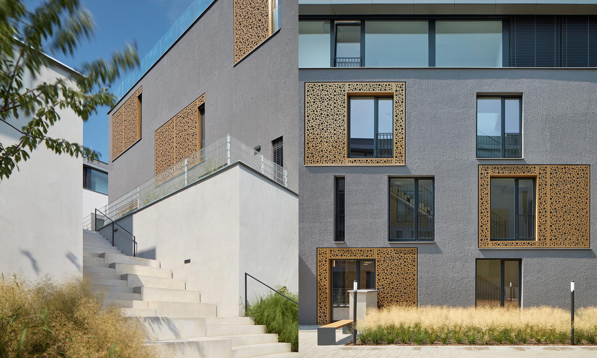 „Domy jsou čtyřpodlažní, měřítko snižují prosklené penthousy nejvyššího patra. Ulice tak dostává příjemné lidské měřítko. Celkem 150 bytů je rozděleno na 12 vstupů. Každý uživatel má maximálně dva sousedy na patře, bydlení je adresné, intimní, pohodlné. Původní těleso poloostrova nenásilně ukrývá obrovský podzemní parking pro 156 automobilů. Tomu musela být přizpůsobena vodotěsná spodní stavba. Založení objektů v podstatě na vodní hladině vyžadovalo celkově náročné technické řešení,“ dodávají architekti.