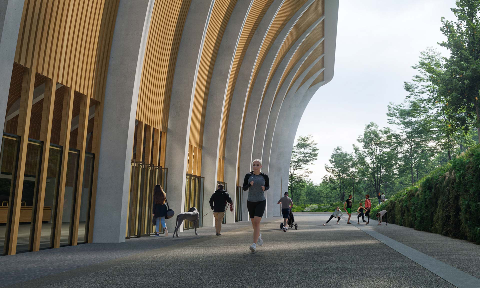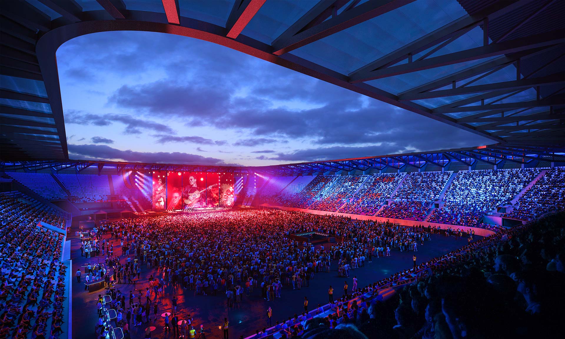 „Střecha nového stadionu je navržena tak, aby maximalizovala ochranu před povětrnostními vlivy a zvýšila úroveň komfortu na přilehlých vnějších náměstích i ve vnitřních halách a definovala krytou 360stupňovou veřejnou komunikační trasu, která je nezávislá na dění uvnitř stadionu; vytváří příjemné nové veřejné prostory pro nejrůznější občanské, rekreační a kulturní využití místní komunitou a návštěvníky parku,“ dodávají.