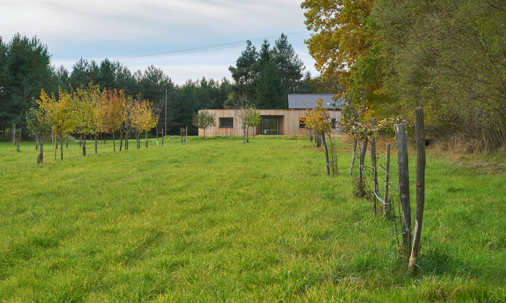 „Drážní domek (wechterovna) zůstal zachován jako dominanta a společný obytný prostor v původních materiálech a barvách. Dostavba obytné části jej propojila s rekonstruovaným hospodářským objektem. Vznikla nová usedlost ve tvaru podkovy s polokruhovým chráněným dvorem, sjednocená modřínovou fasádou. V interiéru jsou záměrně využity stejné konstrukční prvky a materiály jako v objektu terapeutické komunity, kde klienti strávili první část léčby. Bílé stěny, dřevěné stropy, cihlová dlažba, dřevěný obklad fasády – kontinuita architektury doplňuje kontinuitu léčby,“ uvádí architekt Jakub Našinec.