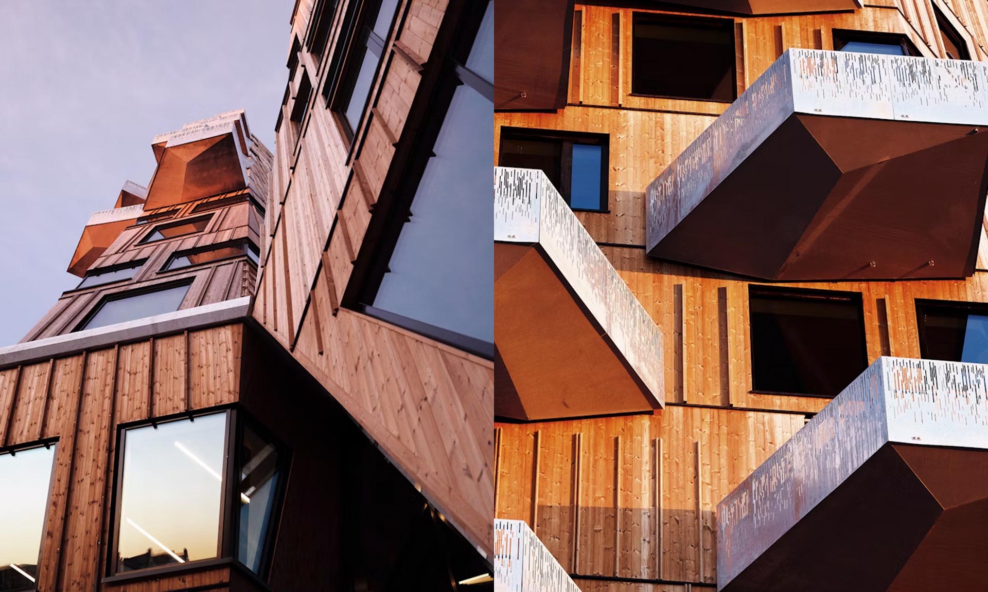 Po devíti letech od zahájení projektu vyrostl v norském Oslu multifunkční objekt Vertikal Nydalen. Novostavbu v bývalé průmyslové oblasti navrhl renomovaný ateliér Snøhetta jako 18podlažní budovu celou opláštěnou dřevem s výraznými plechovými balkóny ve vyšších patrech. V přízemí najdete restaurace a obchody. V dalších patrech pak kanceláře. Bydlení jsou věnována nejvyšší patra. Nechybí zahrada a velká míra soběstačnosti.