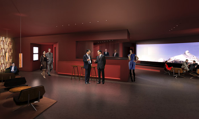 Čtyřpatrová budova návštěvníky areálu ohromí na první pohled částečně průhlednou národně červenou fasádou, která je protkána nepravidelně rozmístěnými LED světly a fotovoltaickými články. Interiér budovy je rozdělen na dvě části. V jedné je velký promítací sál, předvádějící v trojrozměrné technologii IMAX krásné Švýcarské Alpy, a pod ním expoziční prostory krás země, klasické posezení, restaurace, šatna, kanceláře a temně rudý VIP salónek. Druhá část pavilonu je tvořena skrze všechny patra velkým tunelem.