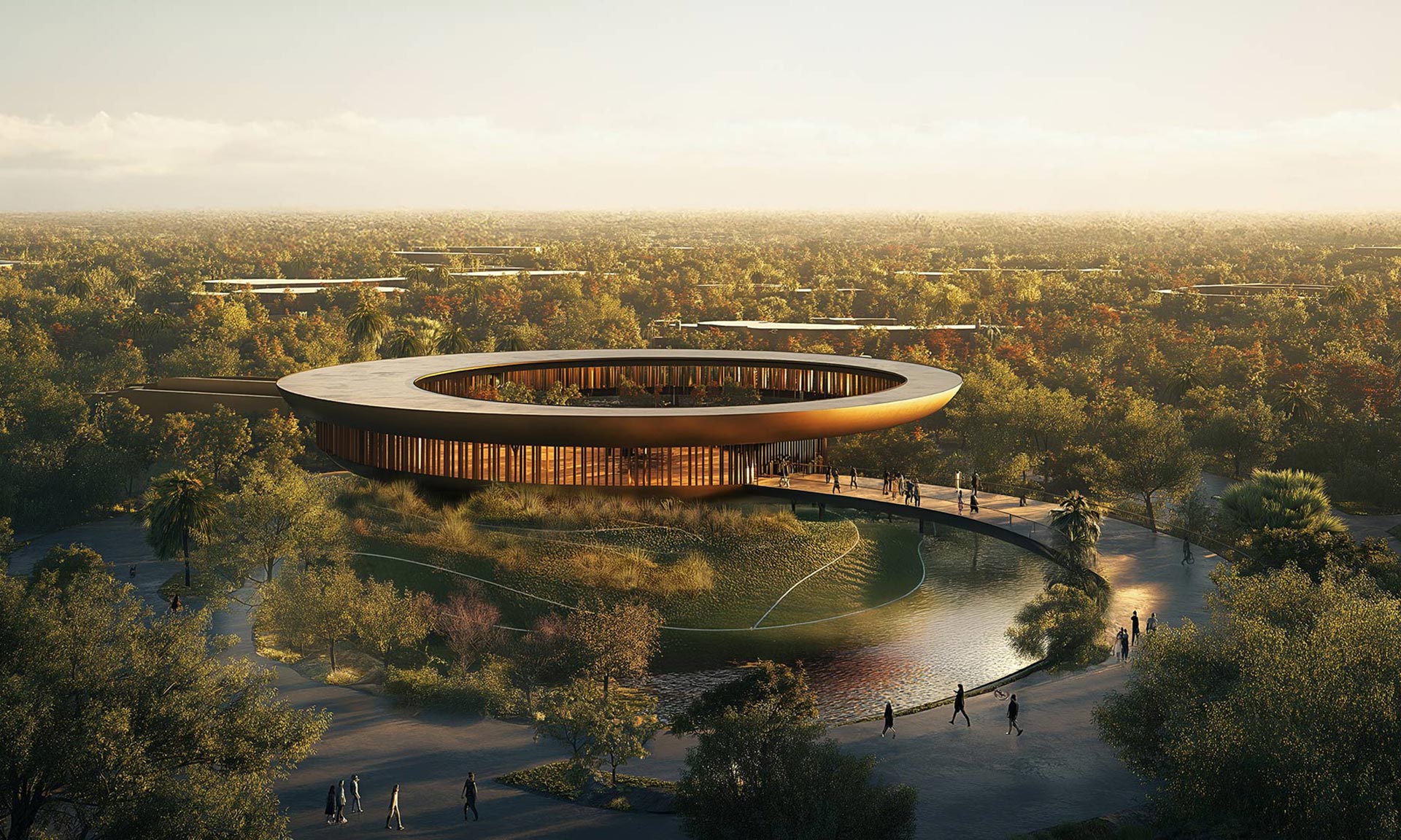 „Areál definuje řada tematických lesů, z nichž každý nabízí přizpůsobené prostory pro kreativitu, pohodu, zábavu a komunitní život. Milion stromů v areálu zachycuje ročně 22 000 tun CO2 a je rozptýlen mezi klidnými stezkami a živými veřejnými náměstími. Hlavní plán zavádí odlišné brány a vesnice s životním stylem s více než 1 500 000 metrů čtverečních maloobchodní, komerční a rekreační infrastruktury,“ uvádí k projektu ateliér.