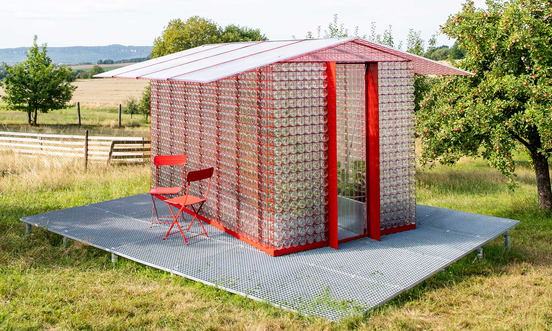 Originální skleník s jednoduchým designem má červenou kovovou konstrukci, která drží stovky zavařovacích sklenic. Skleník je plně funkční a snadno modulární. Prohlédnout si jej můžete před Křižíkovými pavilony na Výstavišti v Holešovicích a to konkrétně na střeše. Přístupný bude od středy 8. října do neděle 12. října 2025.