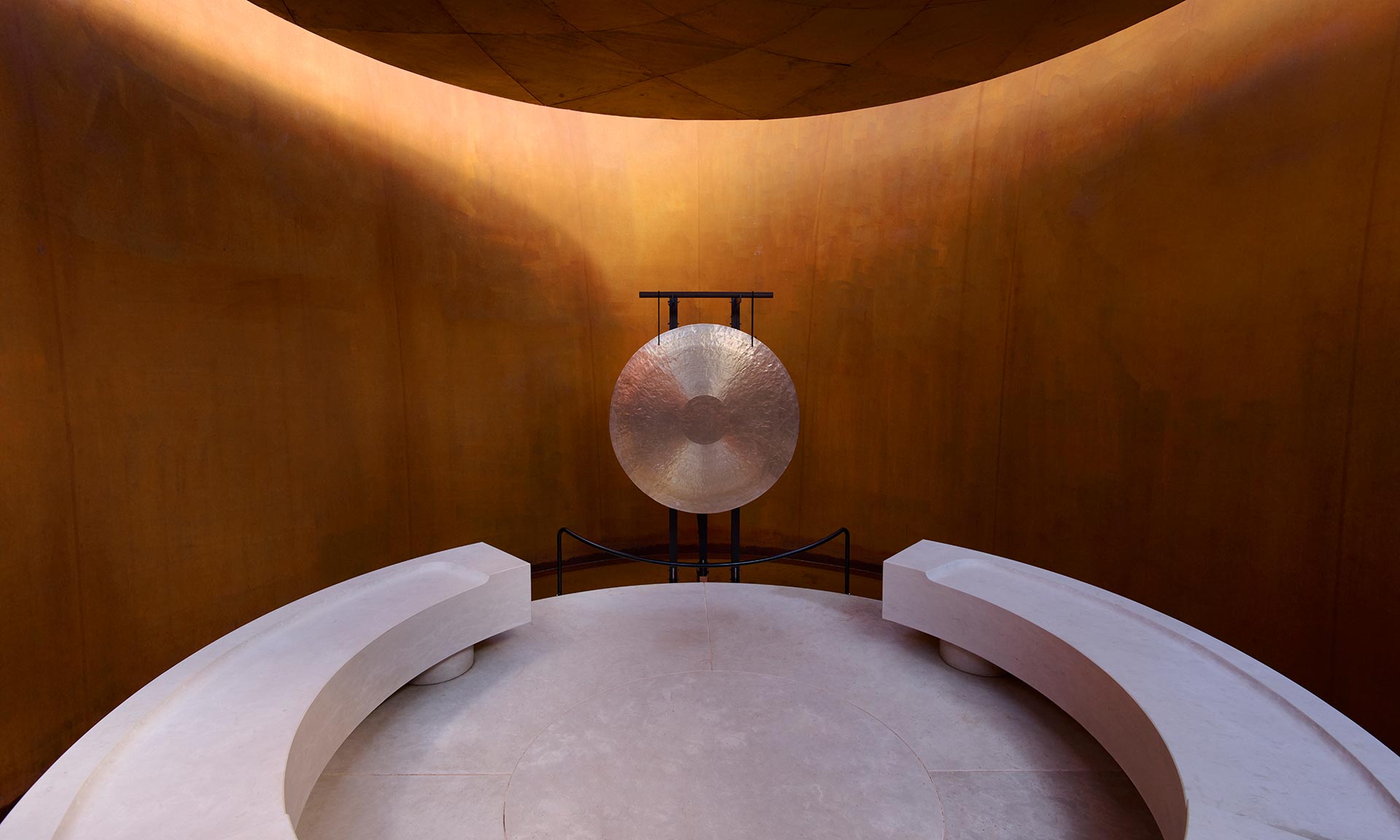 „Zvuk, který rezonuje naším tělem, ruší hranici mezi návštěvníkem a samotnou budovou. Stavba odráží zvuk zpět, čímž se cesta i samotná komora proměňují v rezonanční nástroje. V posledním desetiletí života se Doshi částečně odklonil od architektury k umění, ale u tohoto projektu se vrátil k dřívějšímu procesu navrhování – nejprve psal, poté nás vedl při tvarování designu. Základem projektu byl zážitek Rolfa Fehlbauma a jeho manželky Federicy Zanco z návštěvy malé indické svatyně u Chrámu Slunce v Gudžarátu. Následovaly Doshiho sny a záměry – texty, skici a vizuální materiály plné vrstev a dualit,“ dodává Khushnu Panthaki Hoof.