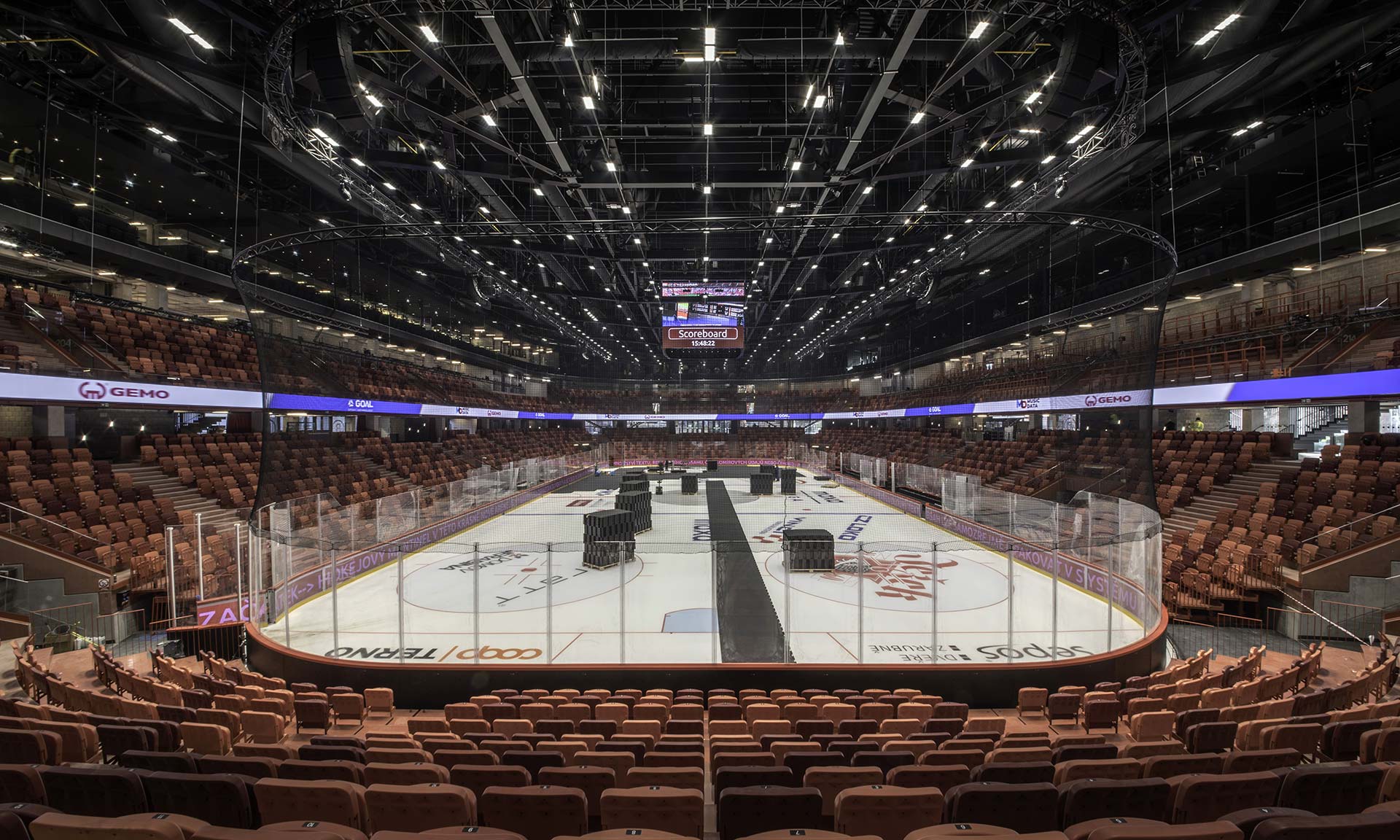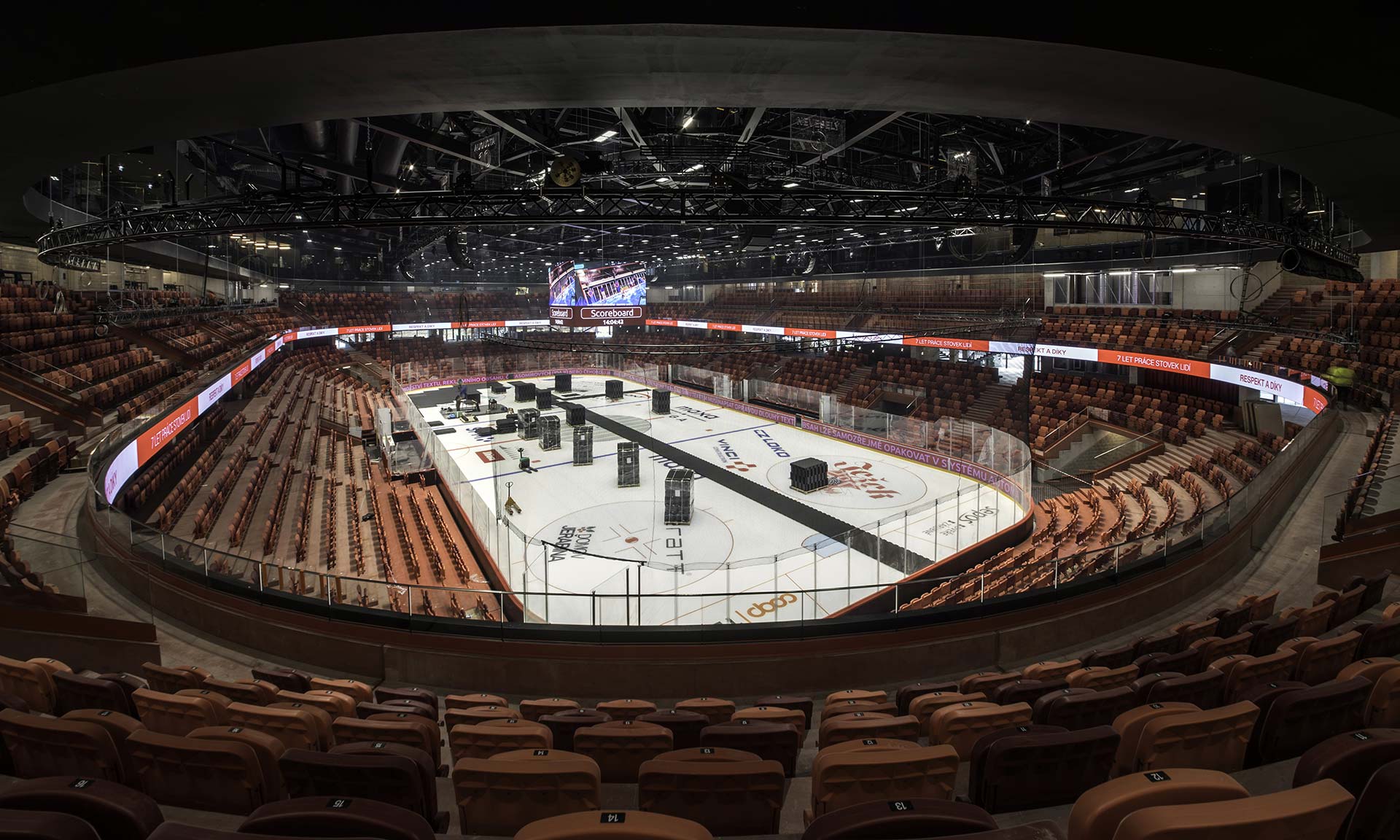 Interiér arény, s užitnou plochou okolo 25 000 metrů čtverečních, má multifunkční využití nabízející možnost konání sportovních utkání, koncertů, konferencí i akcí podobných veletrhům. Pro sportovní utkání je možné využít 5 650 míst sezení například pro hokej, ale tribuny umístěné ve dvou patrech je možné rozšířit výsuvnými až na 7 400 míst k sezení. Zajímavostí je možnost zatažení druhého patra textilními závěsy pro zlepšení akustiky sálu. Interiér je pokud to bylo možné vybaven od českých značek a českými produkty. Rozpočet na výstavbu byl 80 milionů euro, tedy asi dvě miliardy českých korun.
