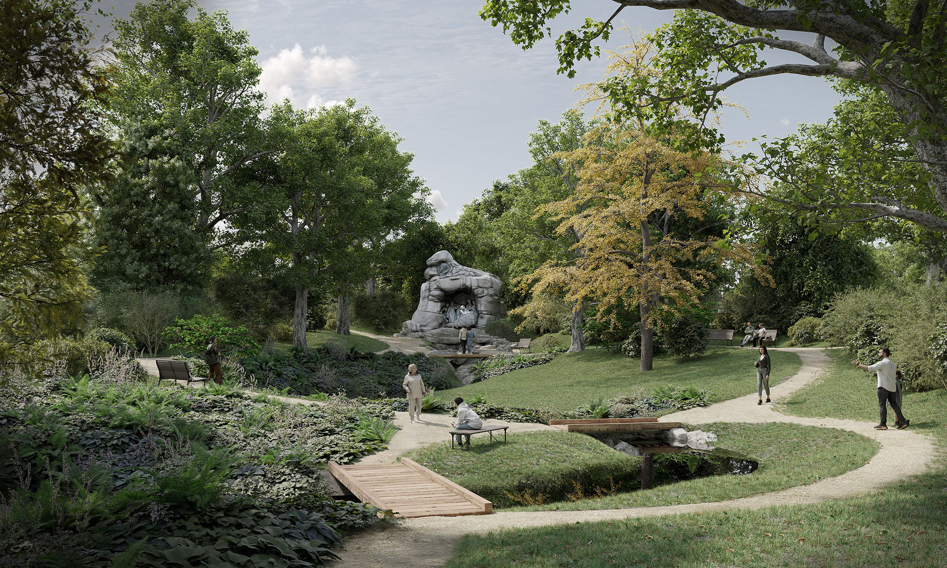 „Naším cílem je uchovat raně krajinářský park s prvky novoromantického charakteru pro další generace. Centrální kompozice palouků se stromovým lemem je zachována a po okrajích jsou doplněny vyhlídky a odpočívadla, které dnešní návštěvník v parku vyhledává,“ dodává Radek Prokeš ze studia Arkytek, které v návrhu pracovalo s pestrou skladbou dřevin i barevností olistění stromů napříč ročními obdobími.
