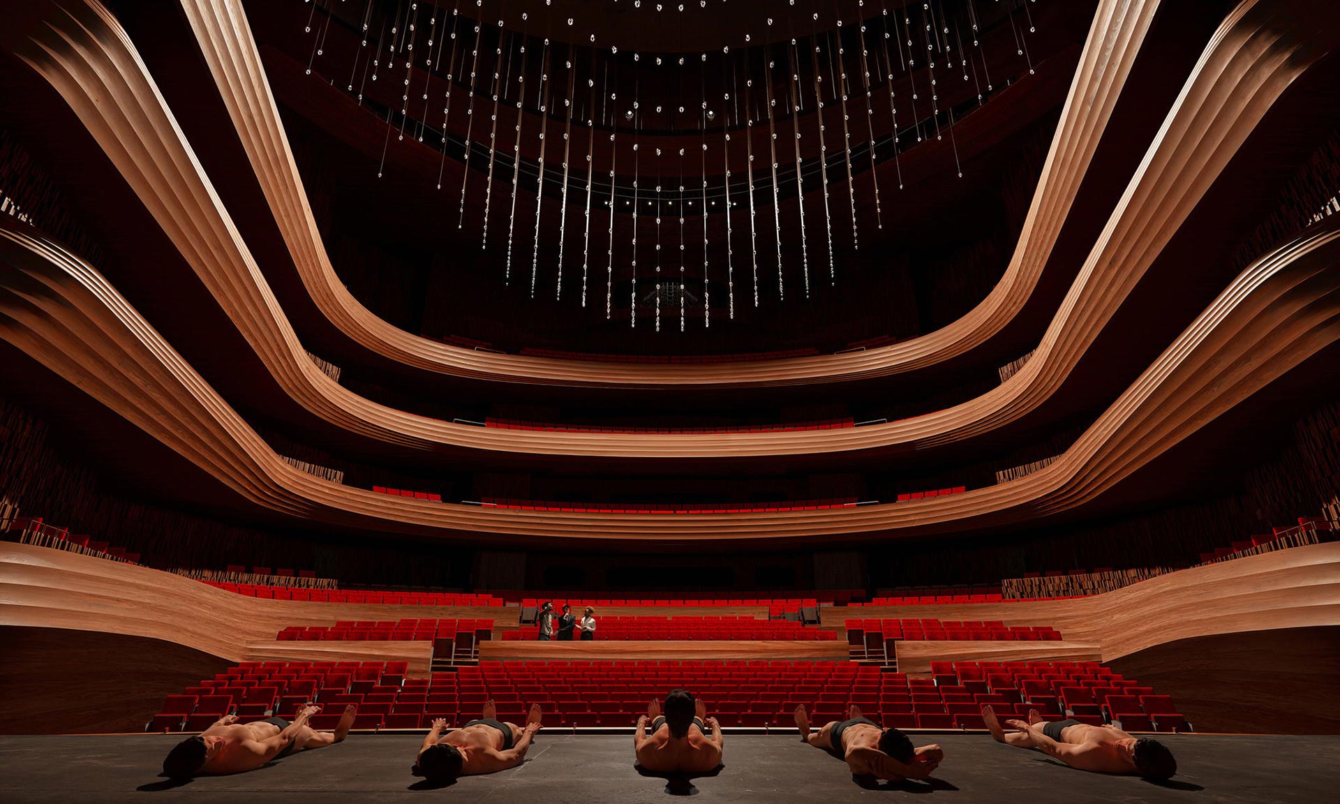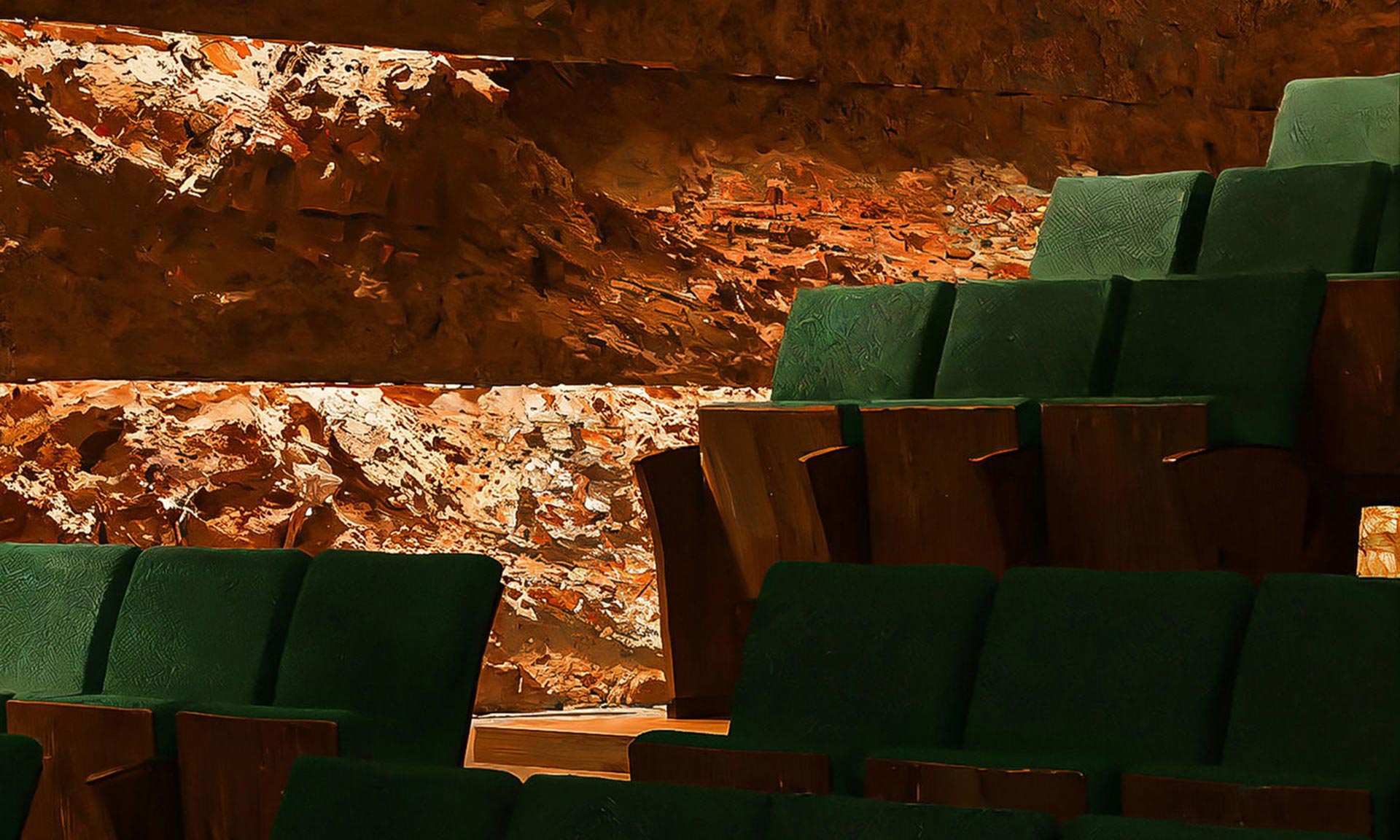 Interiér budovy s fasádou evokující erozi skalního masivu nabídne hlavní hlediště s 1 300 sedadly a obložením z kouřového dubu. Odkazuje se tak na interiér stávající opery, která má být zbourána. Pod střechou nového operního domu má být také menší hlediště se zelenými sedadly, jehož zdi mají být obloženy kamenem a evokují skalní masivy.