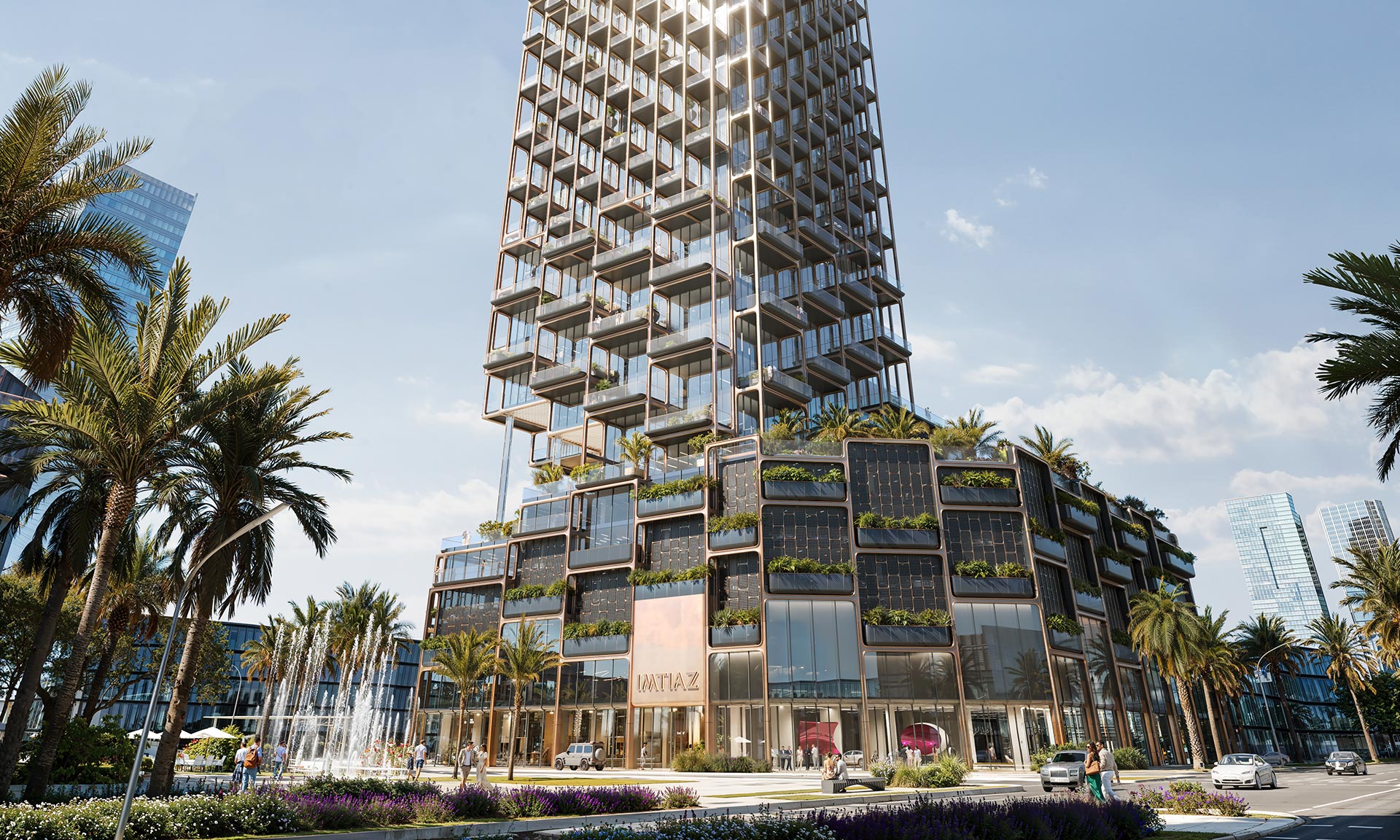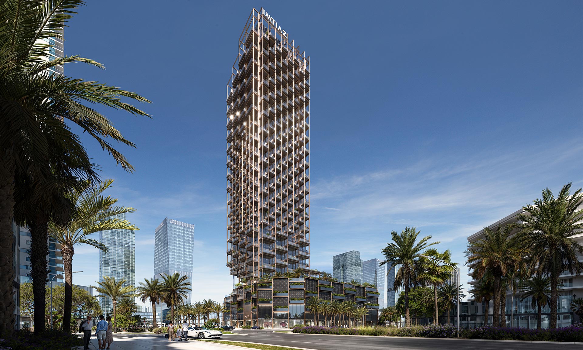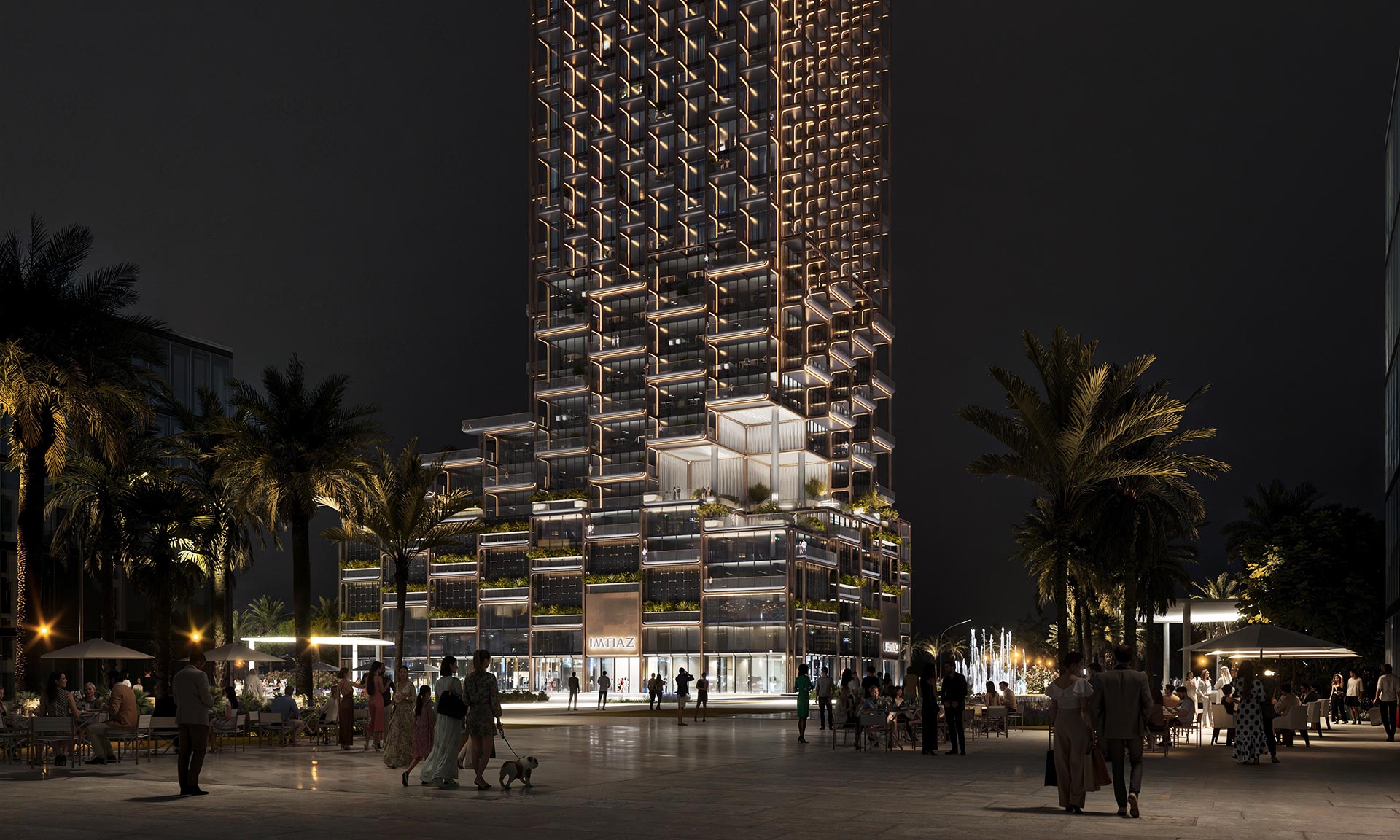 „Inspirován charakteristickými trojrozměrnými geometrickými tvary a detailními výšivkami Al Sadu a Talli – tradičními emirátskými řemesly tkaní kovovými nitěmi – exoskelet věže definuje propletenou fasádu, která se zdá měnit tón a hloubku v závislosti na pohybu slunce po obloze v průběhu dne. Různé venkovní prostory v celé 42patrové věži poskytují každému bytu venkovní obytné plochy. Tato propletená struktura, určovaná mřížkou exoskeletu věže a zdůrazněná různou hloubkou těchto venkovních prostor, dodává každé fasádě charakteristický rytmus a texturu, napodobující složité vzory a řemeslné zpracování výšivek vytvořených tradičními řemeslníky emirátů,“ uvádí architekti.