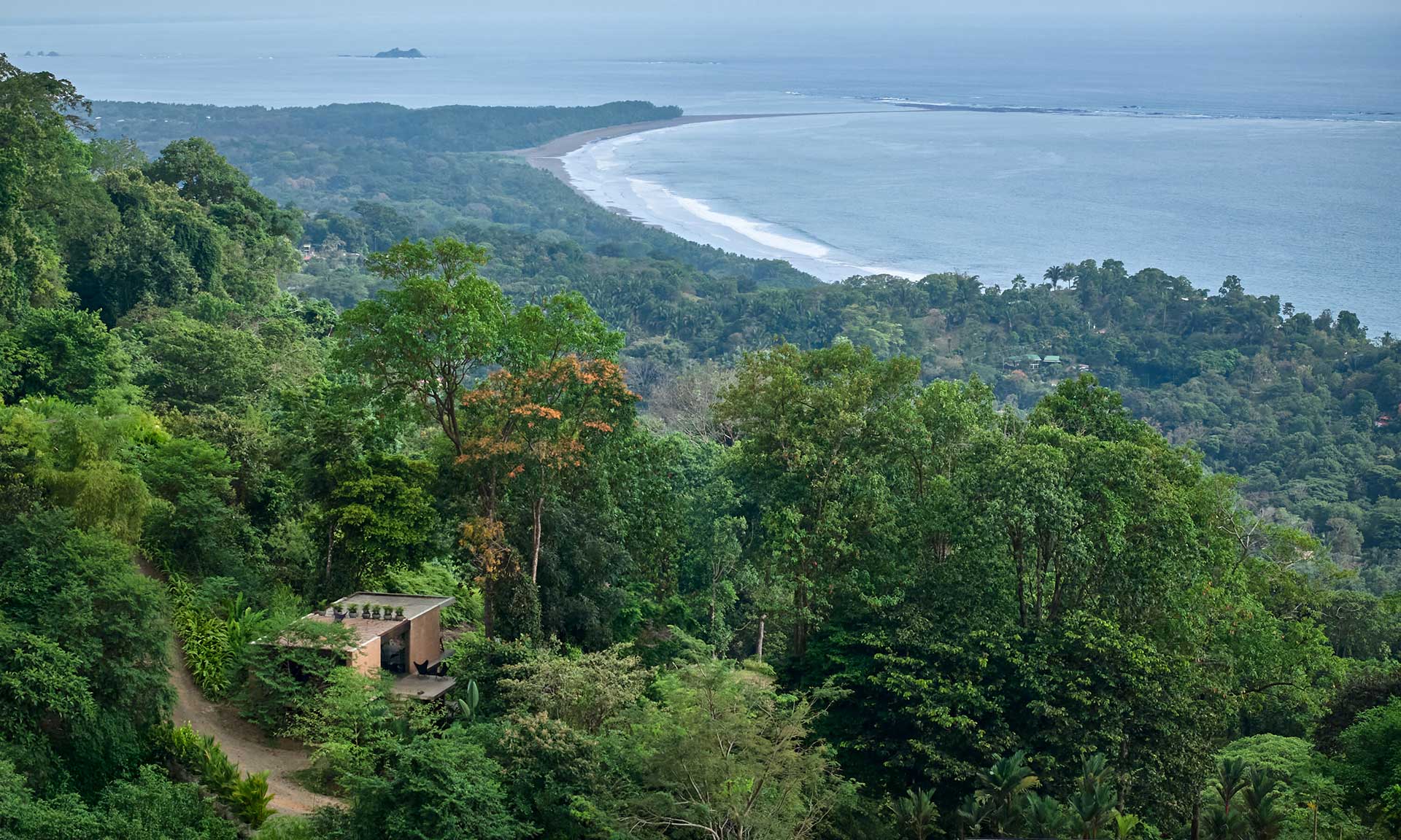 „Studio House je rodinná vilka, kterou architektka Dagmar Štěpánová postavila pro sebe a svého dlouholetého kamaráda a společníka Karla Vančuru. Pro Dagmar je trvalým domovem, pro Karla sezónním útočištěm. Dům stojí na společném pozemku s vilkami pro krátkodobé pronájmy – Achioté, které Dagmar navrhla a společně s Karlem vlastní a provozuje. Jižně orientovaný svah nad Pacifikem je tak dokonalým místem pro dovolené i pro život plný dobrodružství. Studio House je situován poblíž příjezdové cesty, odkud se jeví jako minimalistický hranol. Fasádu z dusané hlíny střídají velké otvory pro posuvná prosklení. Dům se jimi otevírá do okolních kopců po-rostlých džunglí,“ uvádí k projektu ateliér.