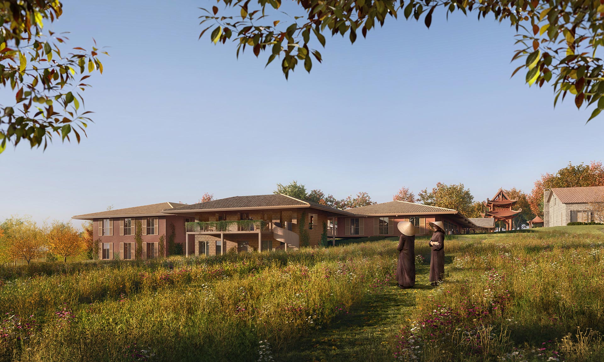 Na jihozápadě Francie nedaleko města Bergerac má vzniknout podle návrhu nizozemského ateliéru MVRDV přebudovaný klášterní komplex Plum Village. Jako neziskovou aktivitu navrhli architekti přístavby včetně nového ženského kláštera, renovaci stávajícího knihkupectví a čtyři nové spojené penziony. Návrhy hodně dbají na cirkulární ekonomiku a biologické materiály. Většina staveb tak bude ze dřeva, keramiky a kamene.