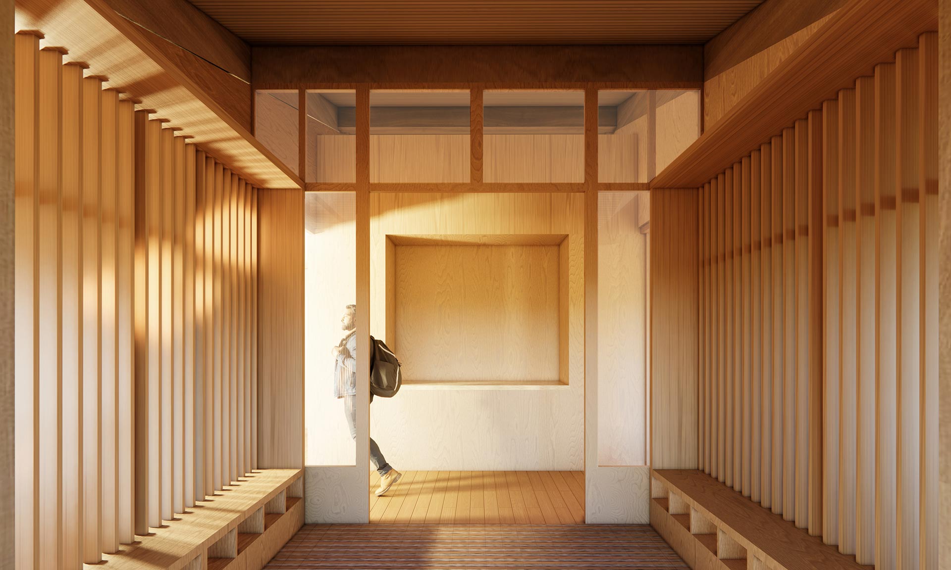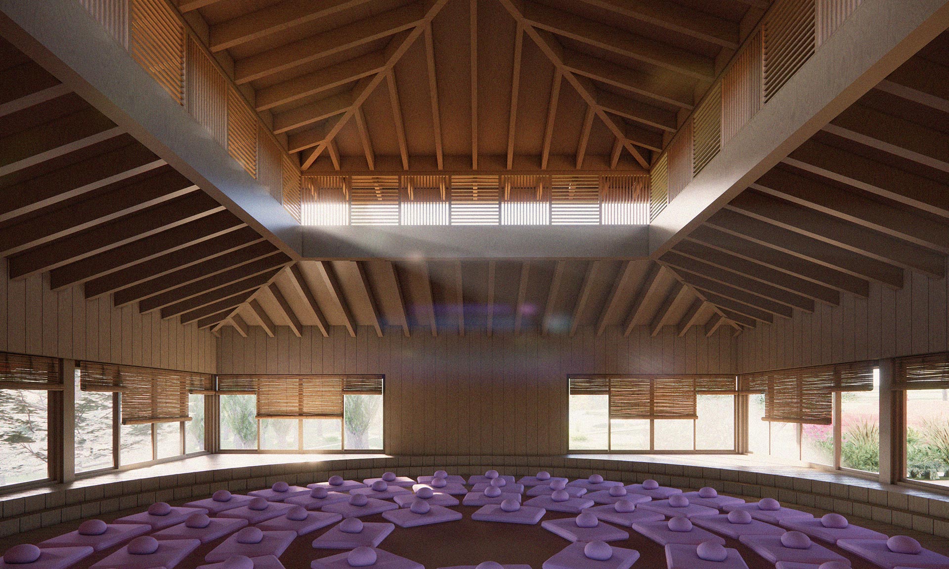 „Největší nová budova navrhovaná v obou hlavních plánech, nový ženský klášter, bude budovou ve stylu nádvoří na svažitém pozemku. Je navržena tak, aby poskytovala ubytování a společenské vzdělávací prostory pro 76 mnišek a aspirantek z 12 národností, a bude zahrnovat ložnice, zendo, knihovnu, společné prostory a učebny. Prostorné verandy obklopují nádvoří a vytvářejí spojení mezi všemi obytnými prostory, což podporuje společenského ducha mnišek. Aby se minimalizovaly emise uhlíku při jeho výstavbě, bude klášter postaven pomocí prefabrikovaného stavebního systému dřevěných rámů s izolací ze slámy,“ dodávají.