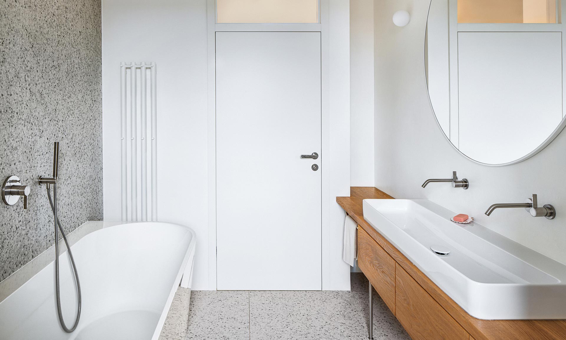 „Vnitřní členění domu bylo upraveno výrazně. Vstup na nejnižší úrovni domu byl celkově zvětšen a prosvětlen díky proskleným dveřím, odstranění podhledů a proměně materiálů i barev. V přízemí se v kontaktu se zahradou odehrávají hlavní prostory – obývací pokoj, kuchyň s jídelnou a ložnice s koupelnou. Pro tu se podařilo vyšetřit místo zmenšením průchodu na zahradu a drobnými souvisejícími změnami. V patře se prostory, které dříve sloužily jako dětské pokoje, proměnily v salón pro setkání rodiny při slavnostních příležitostech a současně v domácí kinosál a pokoj pro hosty. Zásadní proměnou prošlo také podkroví, které nyní umožňuje pobyt hostů i po delší dobu při zachování soukromí jak jejich, tak hostitelů,“ dodávají.