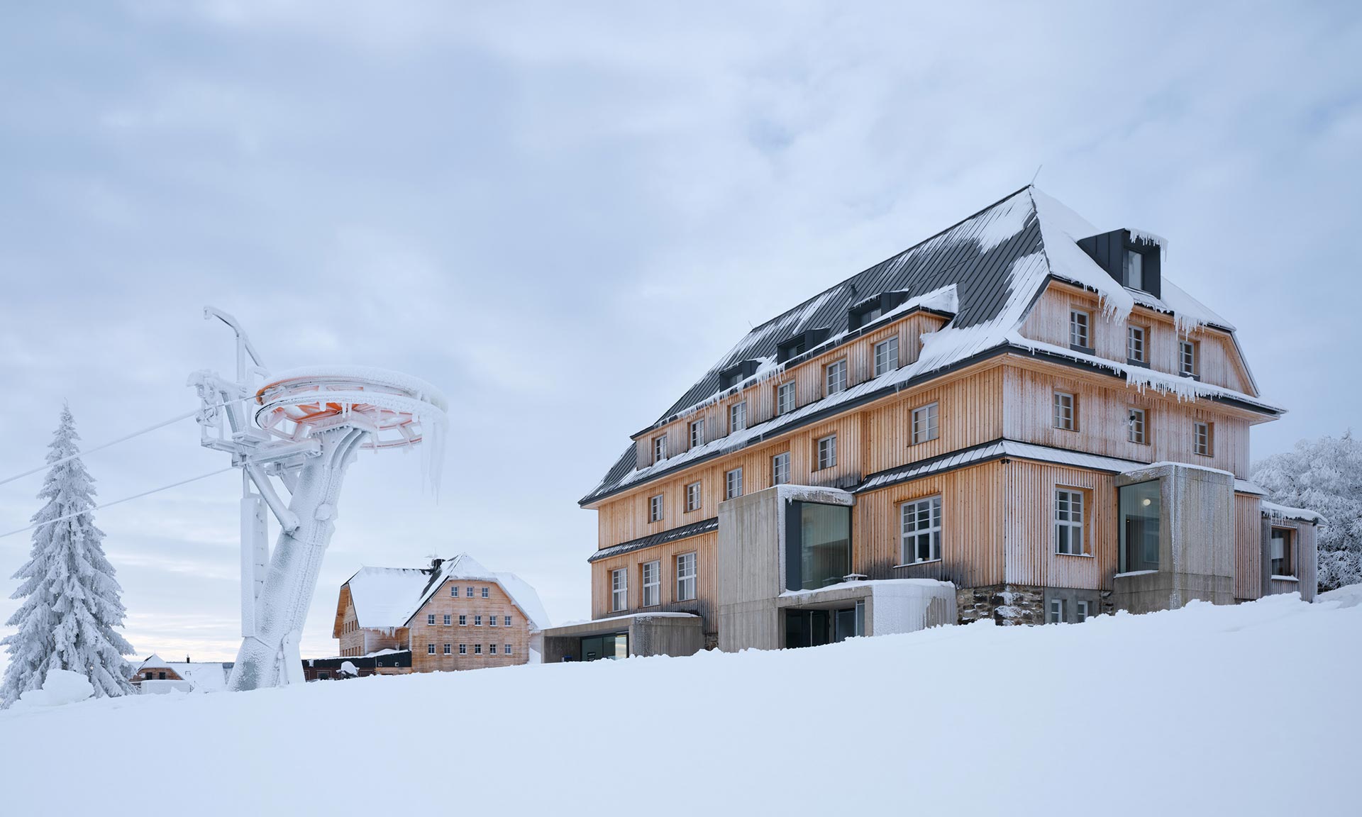 Horní Malá Úpa je oblíbeným místem pro nejen zimní rekreace a mimo moderních chalup tu vyrůstají i ubytovací zařízení. Architekti z ateliéru ADR tu už několik desetiletí spoluvytvářejí několik staveb a nyní přišel na řadu i bývalý hotel Hořec. Proměnil se dramaticky a přesto mu zůstal jeho původní horský ráz. Vyčnívá z něj několik betonových přístaveb, ale ta hlavní změna se odehrává uvnitř.