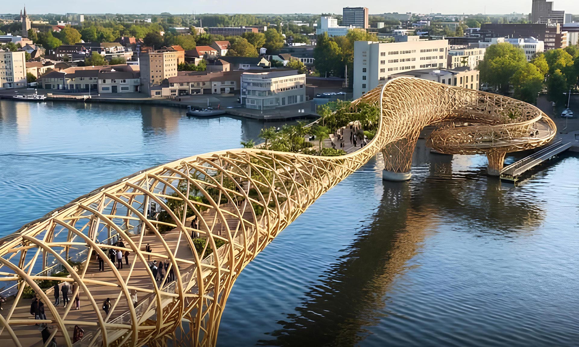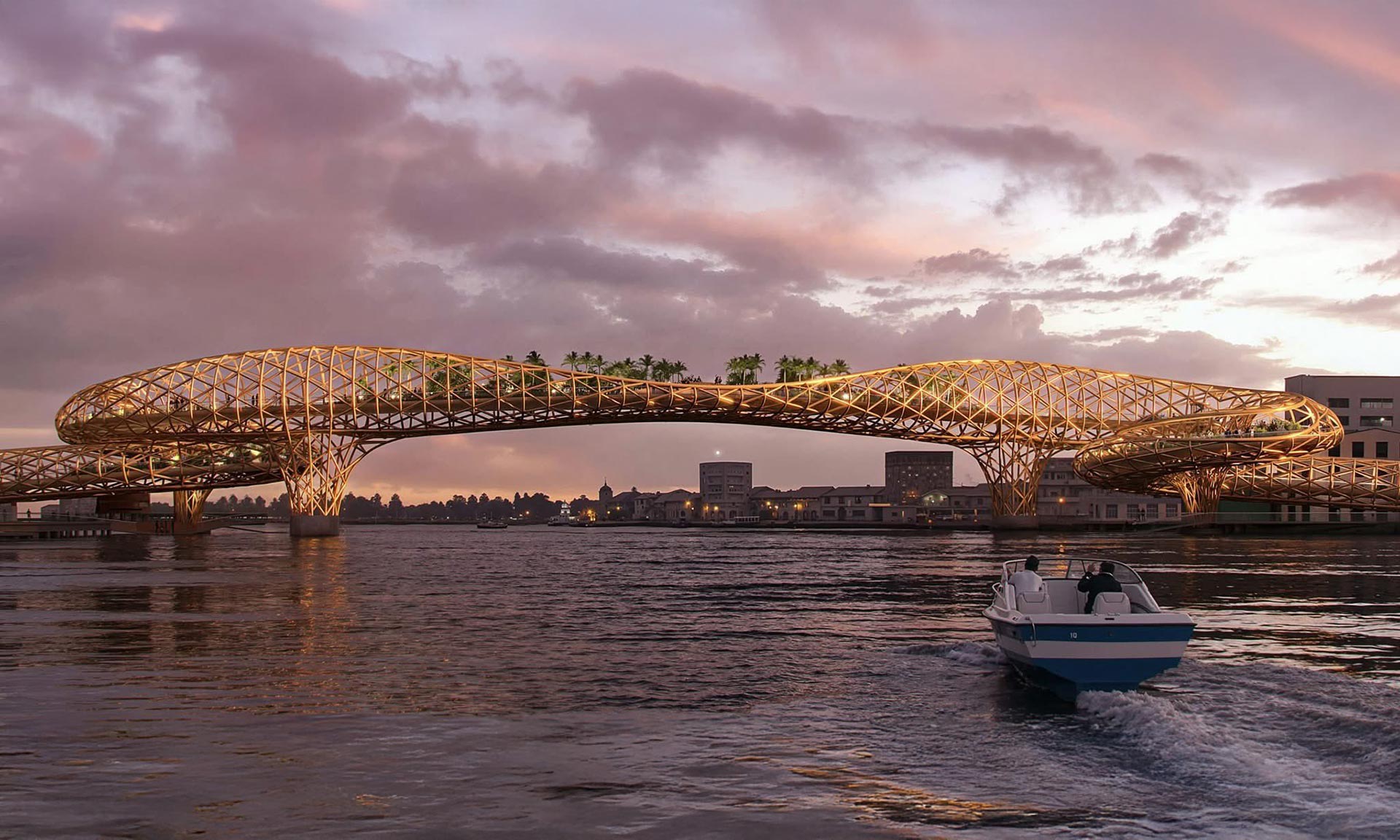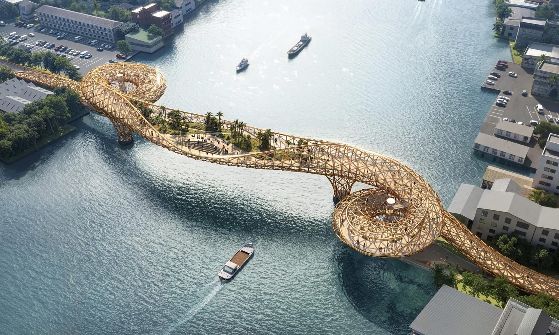 „Most se v centrální části nad řekou rozšiřuje a vytváří prostor pro veřejné náměstí s terasovitě uspořádanými schodišti, která narušují původní lineární trasu pohybu. Do ocelové nosné konstrukce jsou začleněny dřevěné plošiny sloužící k posezení, přičemž jednotlivé terasy doplňují květináče s tropickou vegetací. Otevřené řešení umožňuje průhledy na vodní hladinu pod mostem a zachovává vizuální kontakt s přílivem,“ dodávají k mostu, jehož první fáze přípravy projektu mají být dokončeny ještě letos. Následovat příští rok by mohla stavba.