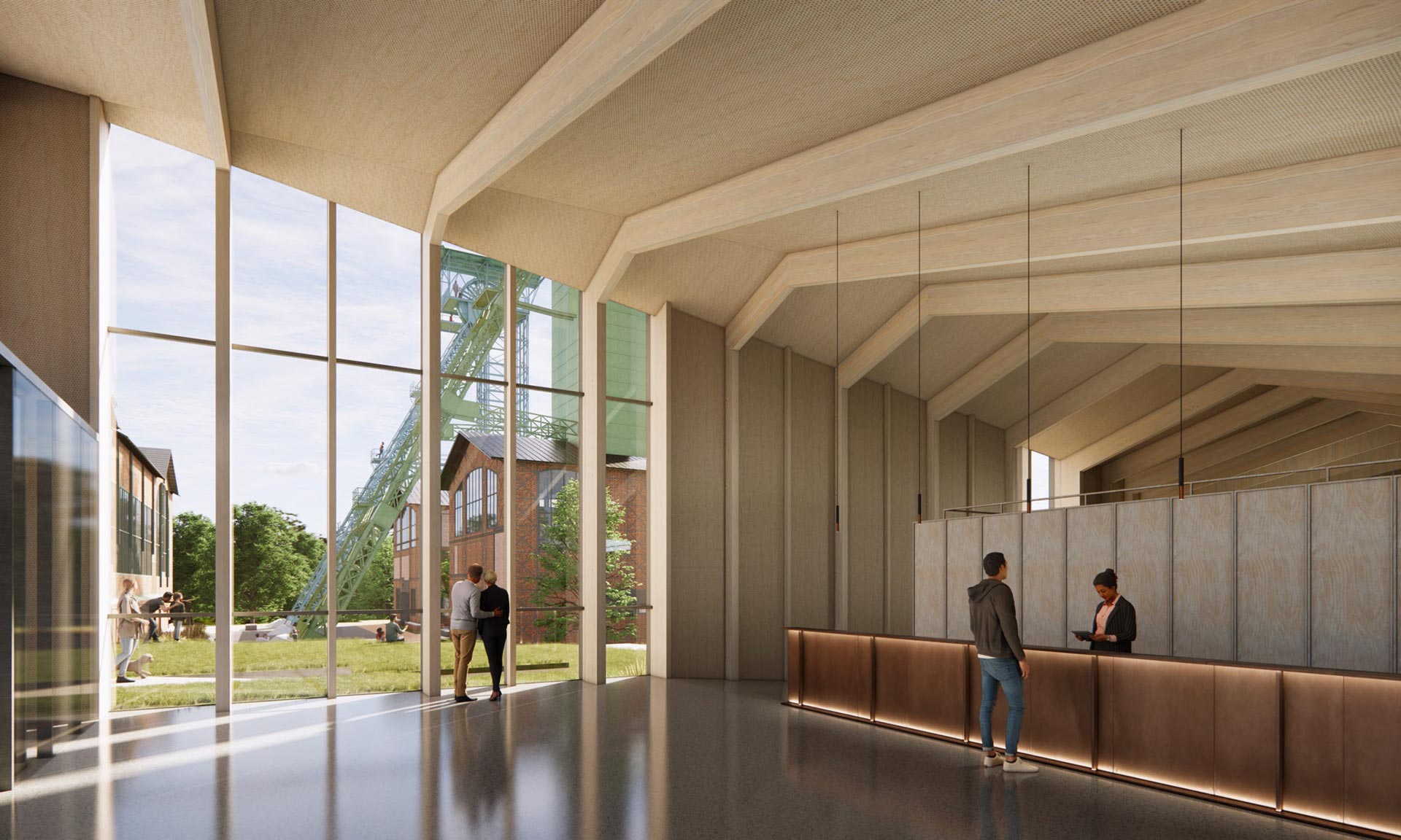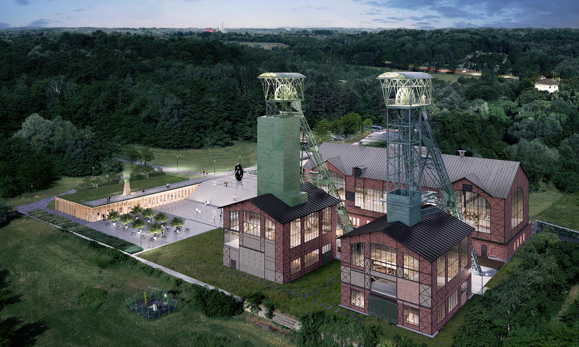 „Budova TIC je navržena v souladu s principy oběhového hospodářství a téměř výhradně z přírodních materiálů. Střecha objektu bude pochozí, zatravněná a nabídne krásný výhled na celý areál. Střechy jámových budov budou osazeny fotovoltaickými panely a areál doplní také geotermální vrty. Díky tomu bude celý komplex z velké části energeticky soběstačný. Unikátní historie areálu a původního hornického města Karviná bude prezentována formou audiovizuální expozice v podzemí bývalé strojovny. Kulturní program doplní venkovní i vnitřní aktivity, které budou citlivě zasazeny do původního kontextu bývalého dolu,“ dodávají.