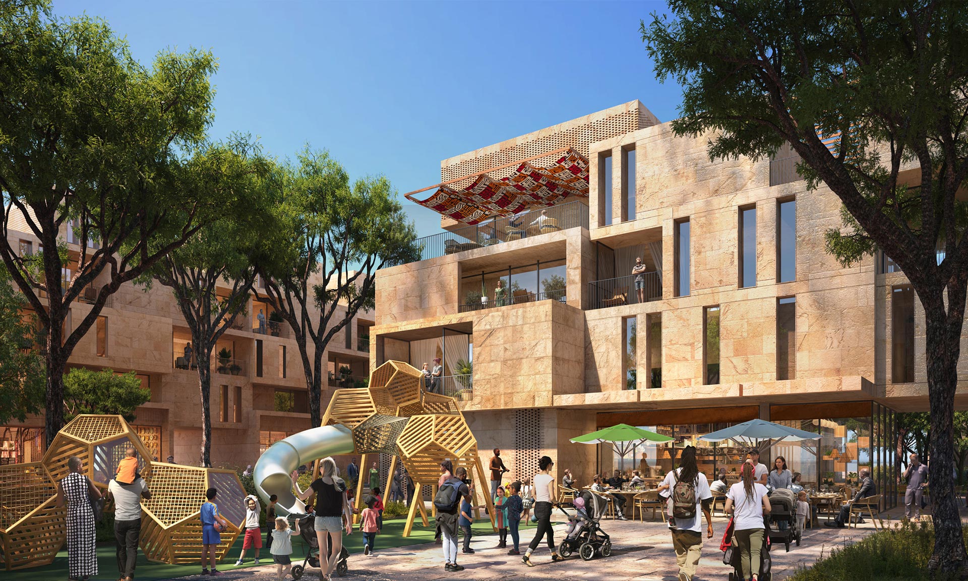 „Tři nové pulzující čtvrti – na severu, západě a jihu letiště – jsou propojeny zelenou smyčkou a oživeny okolím masterplanu. Výšková obchodní a kulturní čtvrť na severu navazuje na centrum Luandy, zatímco nízkopodlažní čtvrť výzkumu a inovací na západě navazuje na stávající obytnou čtvrť. Na jižní straně areálu se nachází čtvrť zaměřená na pohostinství, která nabízí řadu nových resortů, hotelů, vil a sportovních zařízení s výhledem na sousední národní park Quisama. Tato luxusní destinace umožňuje návštěvníkům okamžitě se ponořit do nádherné přírodní krajiny země, aniž by museli přestupovat na let z nového letiště ve městě,“ uvádí k projektu architekti.