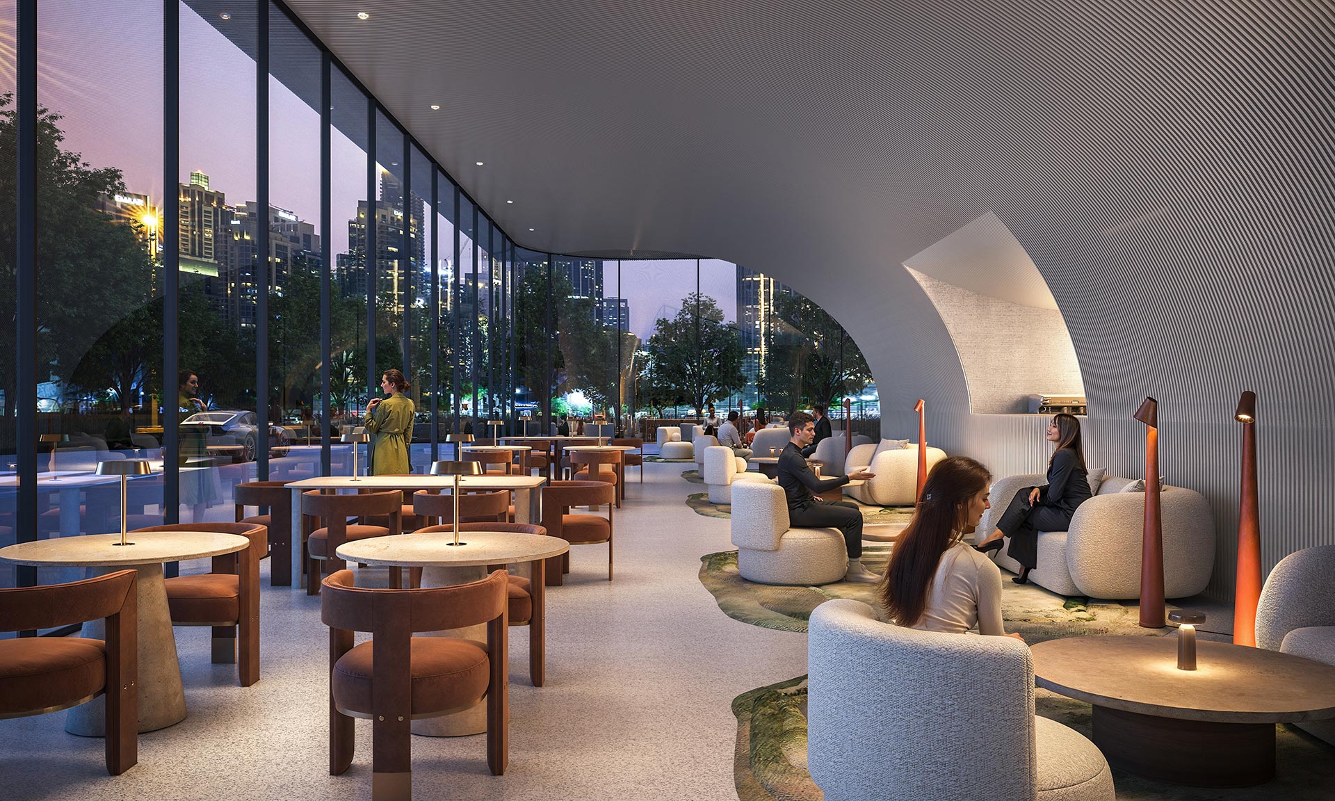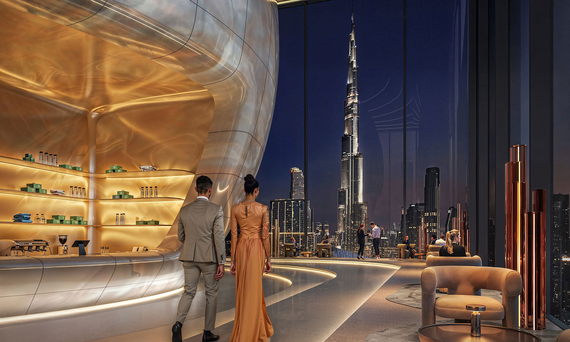 „Tato výrazná stavba má také funkční účel, protože v ní sídlí Sky Lounge. Samotná vejčitá stavba slouží jako VIP prostor, zatímco zbytek podlaží tvoří klub s nádherným výhledem na Burj Khalifa a okolí – vytváří tak místo, kde se obyvatelé a hoteloví hosté mohou cítit skutečně propojeni s energií Dubaje,“ dodávají.