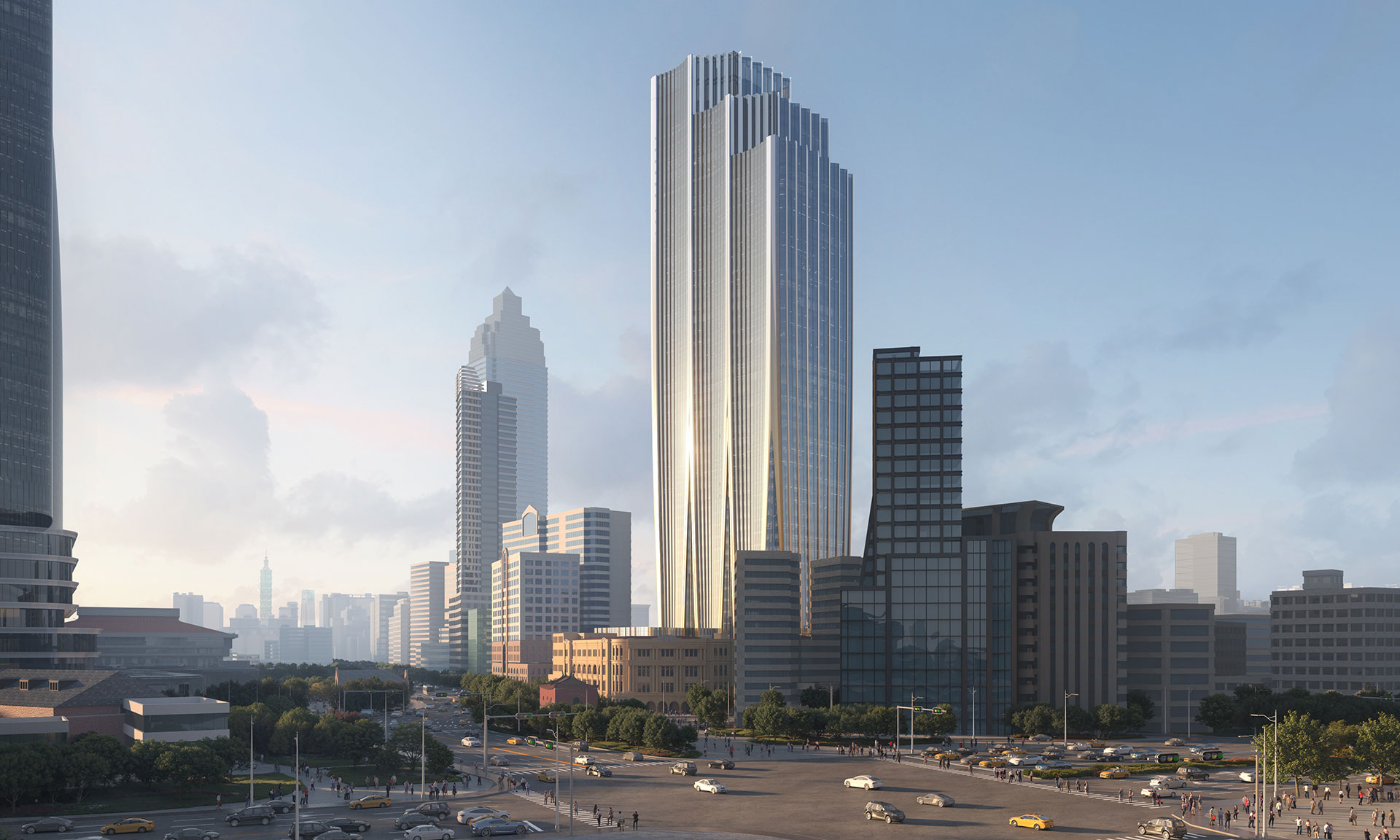 „V souladu s požadavky stanovenými projektem Taipei Western Gateway Project na modernizaci veřejného prostoru města klade návrh NICFC o rozloze 175 000 m² důraz na pěší dostupnost a přístupnost. Návrh propojuje stávající občanská centra čtvrti řadou propojených pěších náměstí, nádvoří a chodníků a zachovává městské panorama a uliční scenérie Beimen, aby bylo zajištěno, že dědictví čtvrti zůstane v moderním městě čitelné. NICFC sousedí s poštou Taipei Beimen (nedávno zrestaurovanou památkou z roku 1930) a zachová původní zdobenou budovu a nahradí její pozdější přístavby, které jsou nyní zastaralé. Stávající 95 let stará budova bude přeměněna na muzeum a kulturní centrum, které zachová její historii a zároveň vytvoří nový důležitý veřejný prostor pro město,“ uvádí k projektu architekti.