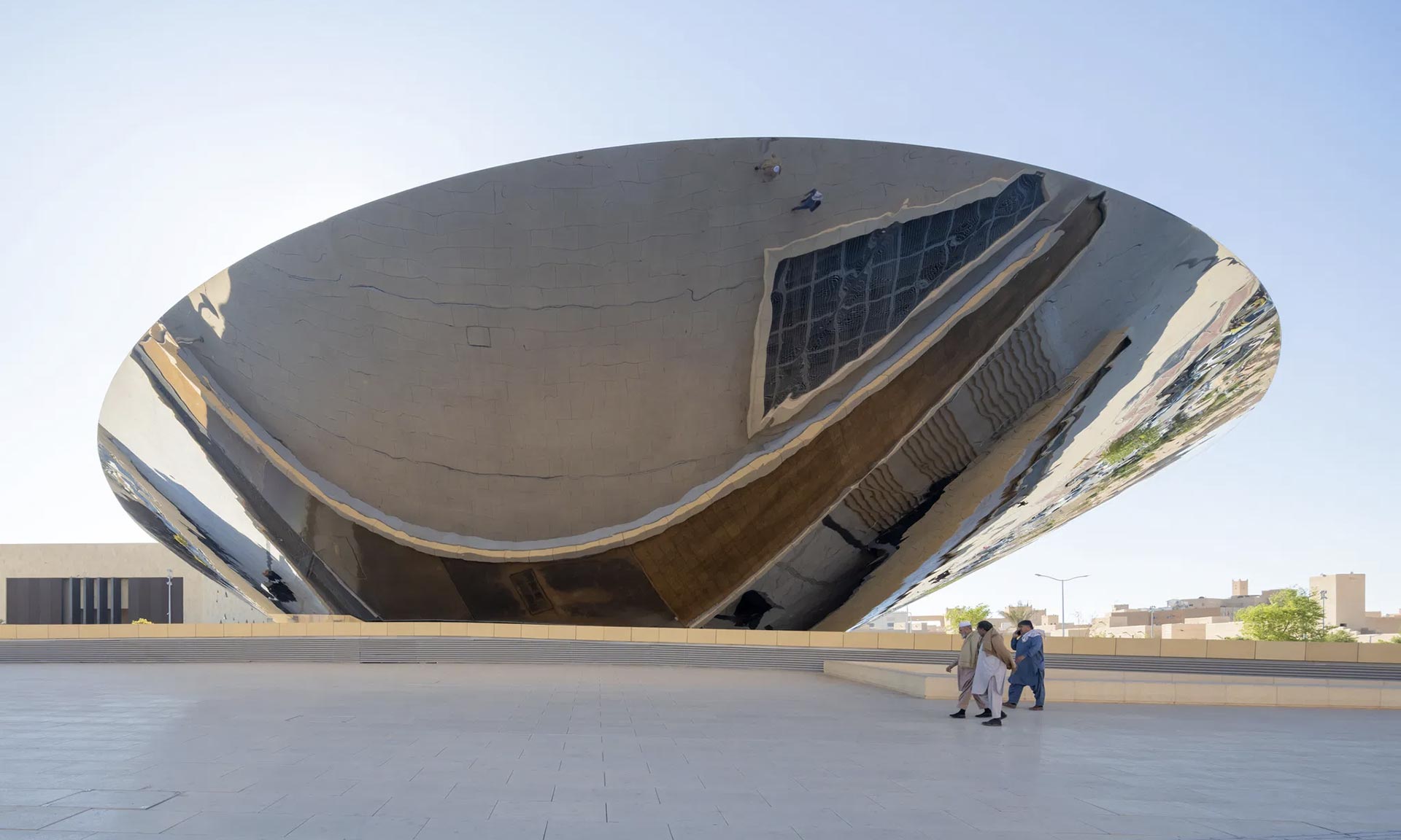 „Nachází se v historickém centru Rijádu, v blízkosti původního paláce a starých adobe budov, vedle důležitého modlitebního pole Eid, které je dimenzováno tak, aby pojalo pohyb mnoha tisíců lidí, kteří se zde scházejí a rozcházejí během každoroční události. Náměstí má hladký teracový povrch, který sahá až k okrajům areálu a jasně ho vymezuje jako otevřený veřejný prostor. Tento velkorysý veřejný prostor vytváří jednotnou plochu věnovanou veřejným funkcím stanice metra a nové mešity, která byla v rámci projektu rekonstruována, aby vyhovovala významným změnám ve strukturálním uspořádání lokality. Osvětlené odvodňovací kanály vyrovnané s Mekkou umožňují, aby prostor fungoval jako venkovní rozšíření mešity a plynule propojoval interiér s exteriérem,“ uvádí k projektu architekti.