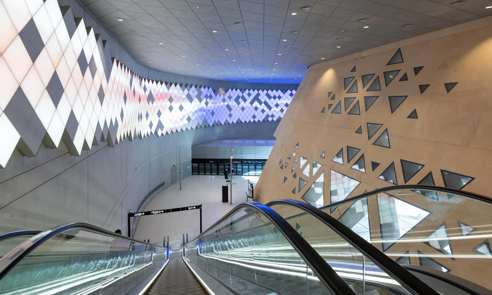 Norský architektonický ateliér Snøhetta dokončil po dlouhých 13 letech novou stanici metra Qasr AlHokm v Rijádu v Saúdské Arábii. Celá stanice má podobu otevřeného náměstí omezeného pouze pro pěší. Nad ním se tyčí prohnutá nerezová střecha, která kryje podzemní část stanice s eskalátory, zelení a spojujícími chodbami propojující dvě zcela nové linky metra. Nerezová střecha funguje jako periskop.