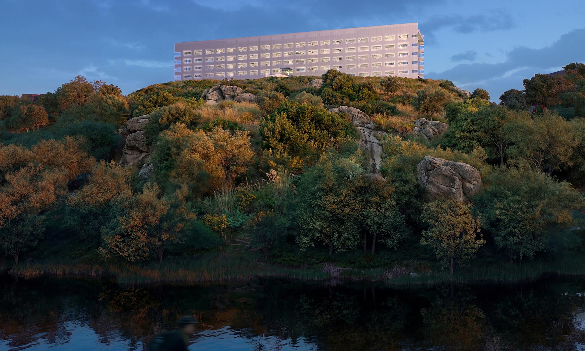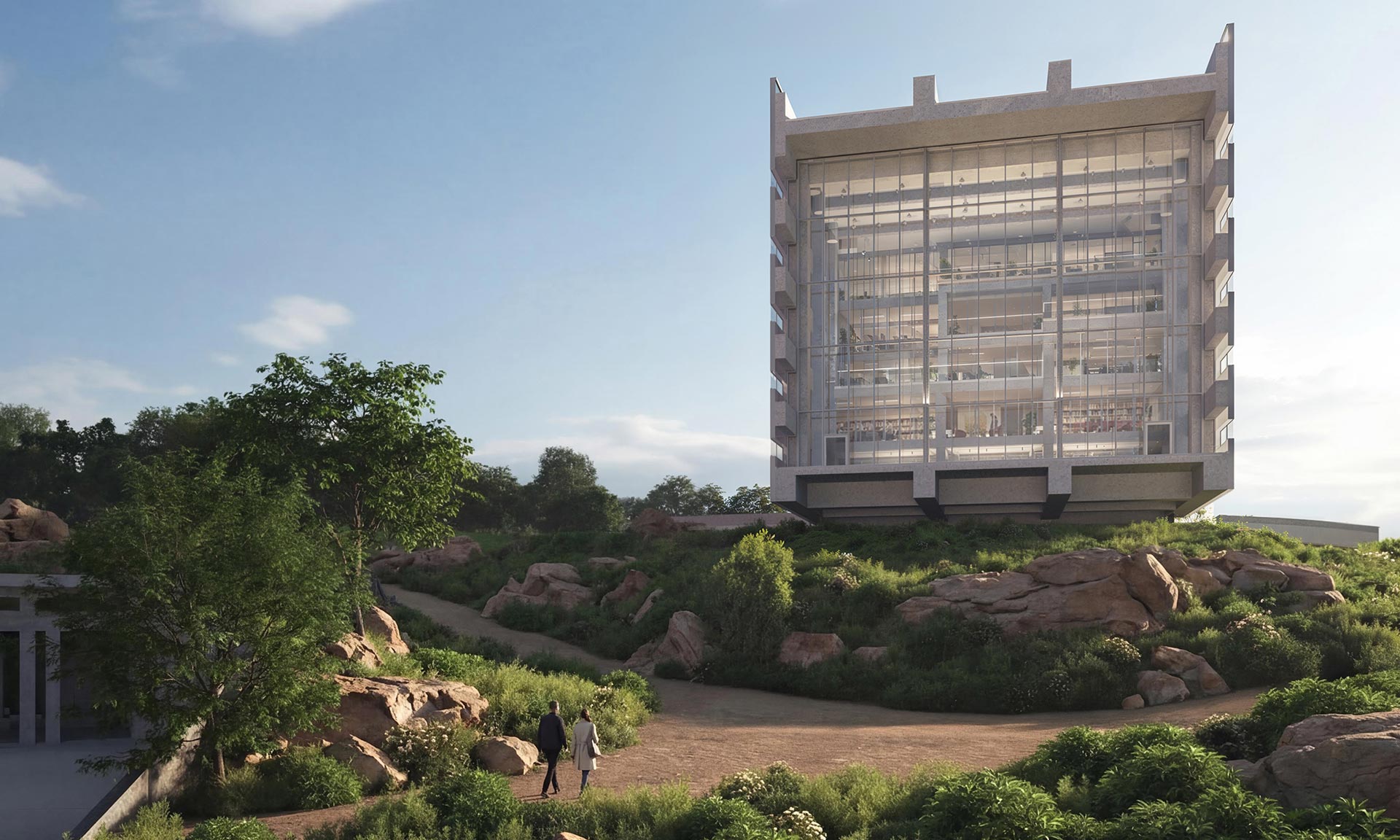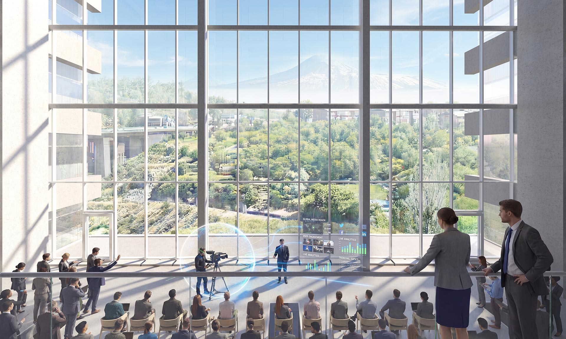 „Návrh nové budovy EU Tumo Convergence Center představuje odvážnou, ale jednoduchou odpověď na umístění nad soutěskou řeky Hrazdan. Monolitický pruh o délce 120 metrů spočívá na zapuštěném podstavci a na obou koncích vyčnívá nad strmé svahy, zatímco velká okna na obou koncích směřují výhled na soutěsku řeky na severu a na horu Ararat – často považovanou za místo, kde spočívá Noemova archa – na jihu. Podstavec budovu zvedá do větší výšky, čímž vytváří svah, který navazuje na nedaleký park Tumanyan,“ uvádí architekti z MVRDV.