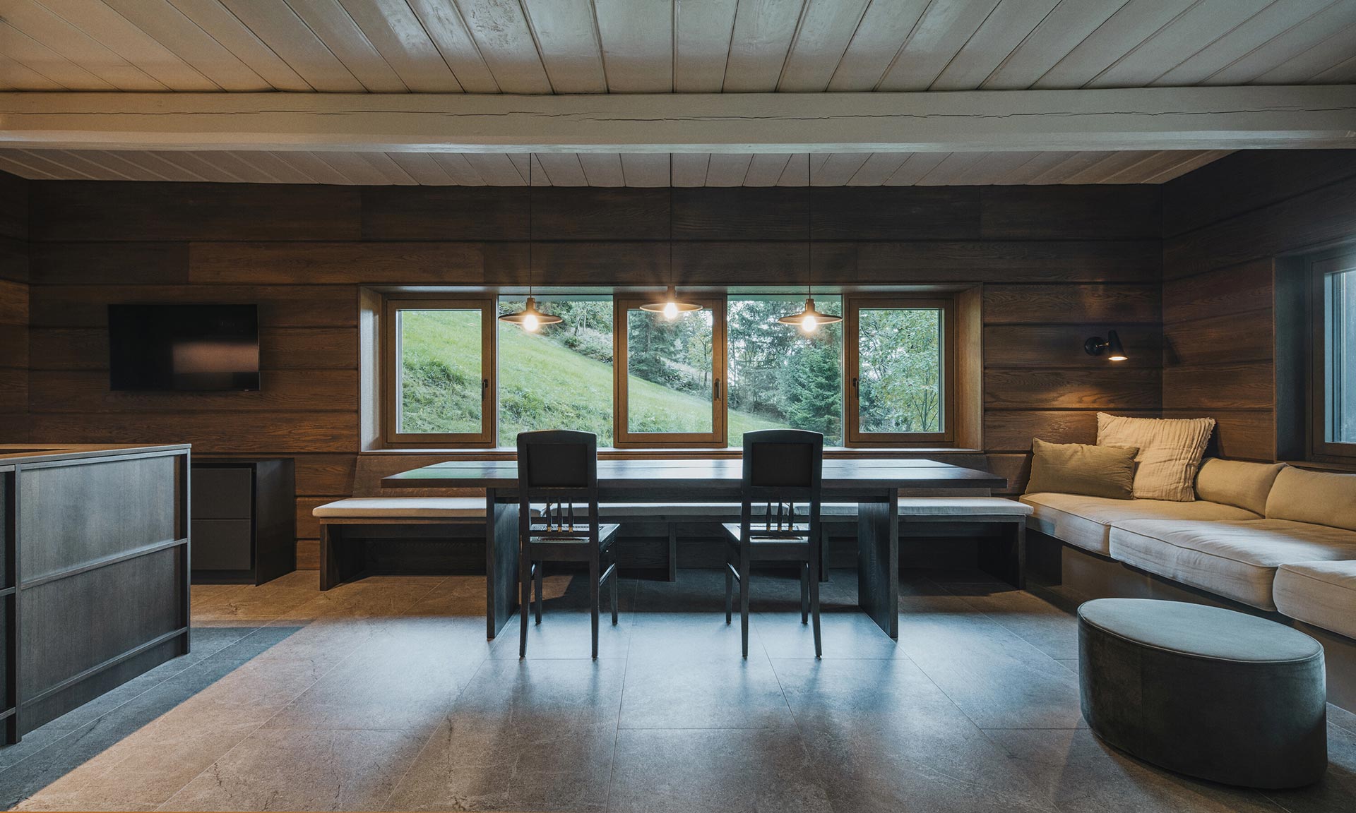 „ Cílem návrhu bylo vytvořit autentickou atmosféru chalupy, aniž by se návrh uchyloval k historizujícím prvkům bez jakékoli skutečné historické hodnoty. Nesnažili jsme se do tradičního objemu vměstnat soudobé prostorové principy, ale spíše naopak – vytvořit soudobou stavbu při využití tradičních prostorových principů. Světnici tak zůstala zachována atmosféra uzavřeného, bezpečného, intimního prostoru. Její dimenzi – a následně i měřítko dalších místností – určil jeden z mála dochovaných prvků: trámový strop. Ten předurčil světlou výšku i celkovou proporci prostoru. Díky kombinaci otevíravých a bezrámových zasklení zůstal zachován rytmus tradiční stavby v exteriéru i interiéru a zároveň se interiér otevřel výhledům do krajiny,“ uvádí architekti z ateliéru Mimosa.