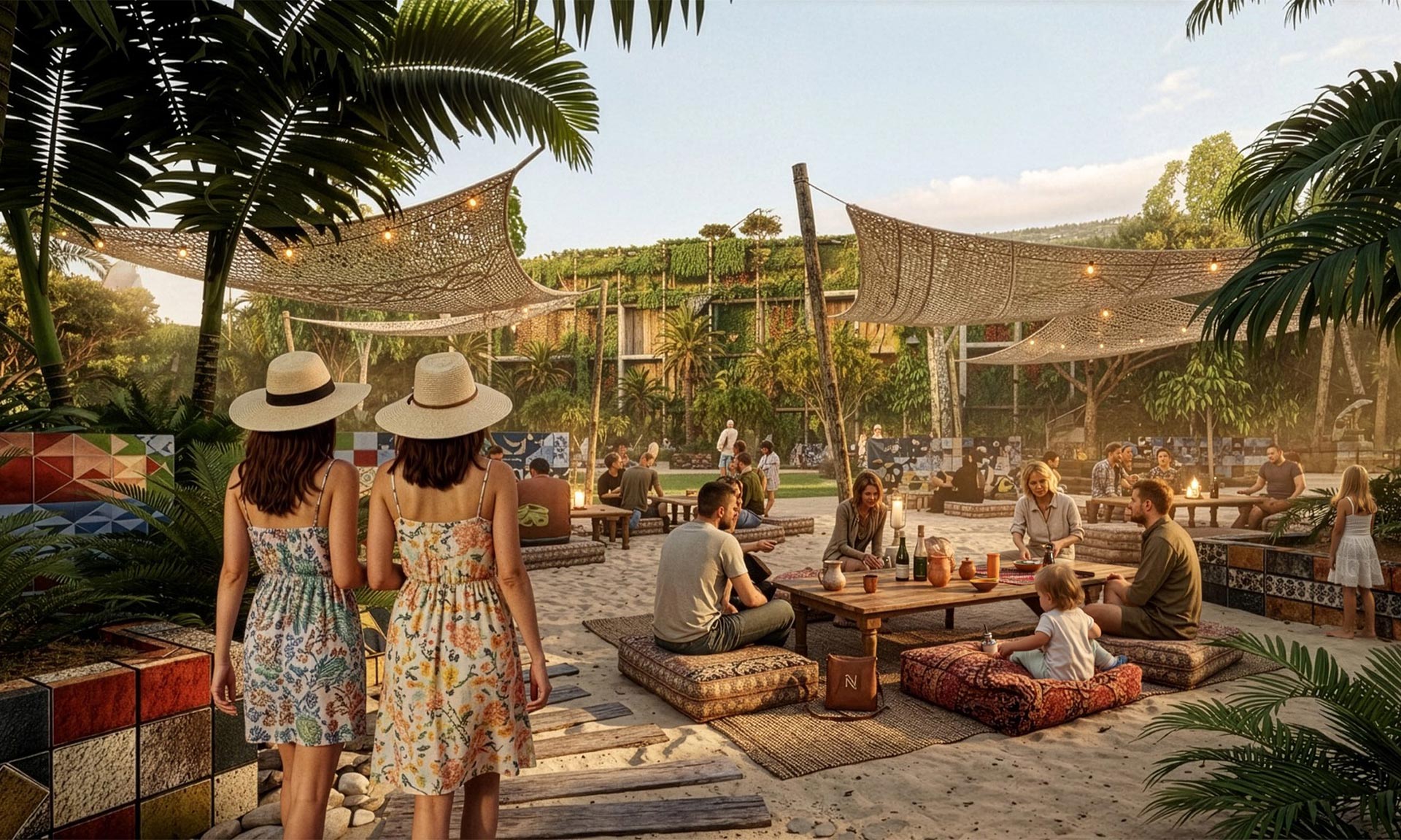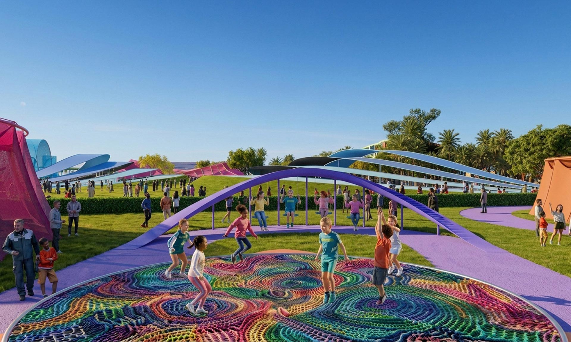 „Barevné, zakřivené cesty zahalené do recyklovaných látek vedou návštěvníky vrstvenými veřejnými prostory, které se rozprostírají po celém areálu, včetně oblastí pro řemeslné trhy, kulinářské zážitky, dětské zóny a další. Kolem stadionu se rozprostírají zelené ostrůvky inspirované krajinou Španělska a Latinské Ameriky, které rozšiřují energii pódia ven do areálu i mimo něj. Jako působivý výraz současné latinskoamerické identity oslavuje Macondo Park hudbu, kulturu a lidské vztahy v jedné živé krajině,“ dodávají.