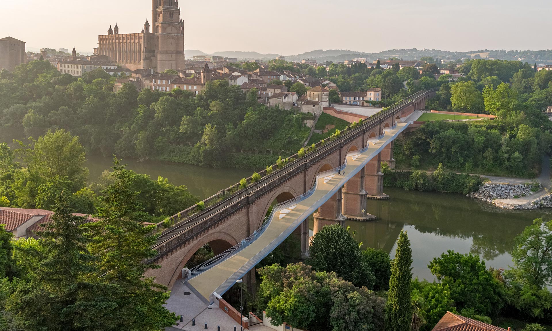 Dvojice architektonických ateliérů Ney & Partners a MSA připravovala dlouhých dvanáct let úchvatný projekt mostu pro pěší a cyklisty ve francouzském městě Albi, které má téměř 50 tisíc obyvatel a mimo dominantní katedrály svaté Cecílie se zde nachází i historický viadukt z 19. století. Právě okolo něj vznikl zavěšený most se zálivy k posezení a vyhlídkám do krajiny. Nechybí další skvělé prvky na okrajích, které místo ještě více zatraktivní.
