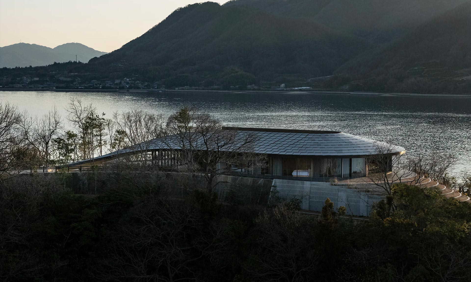 „Not a Hotel Setouchi jsou naše první dokončené budovy v Japonsku, kultuře, která měla hluboký dopad na mě samotného a na mé chápání architektury; místo, kde neohrožený futurismus a hluboké tradiční kořeny koexistují v kontrastní harmonii. Bylo to naprosté architektonické dobrodružství pracovat s Not a Hotel na oživení této vize. Souostroví kolem Sagišimy je jako japonská krajinomalba. Strmé vlnící se kopce pokryté bujnou zelenou vegetací vyrůstají z klidu Vnitřního moře Seto. Čtyři pavilony jsou koncipovány jako rozšíření dramatické topografie. Vrcholky kopců a poloostrovy, výchozy a kaňony jsou ohraničeny stěnami z dusané hlíny a solárními střechami, aby pavilonům poskytly 360, 270, 180 a 90stupňové výhledy na okolní scenérii. Na jedné straně je každý domov jako obydlený výhled, otevřený a extrovertní. Na straně druhé jejich páteřní stěny vytyčují soukromý a chráněný prostor – otevřený pouze nebi. Makrokosmos se setkává s mikrokosmem, tradiční se potkává s moderním; skandinávské a japonské, vily jsou architektonickými oxymórony ztělesňujícími zdánlivě protichůdné prvky do holistického pohostinného celku,“ dodává hlavní architekt Bjarke Ingels.