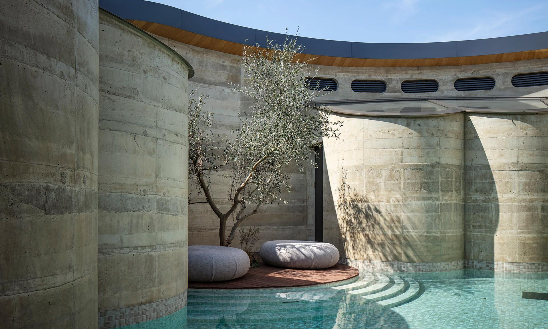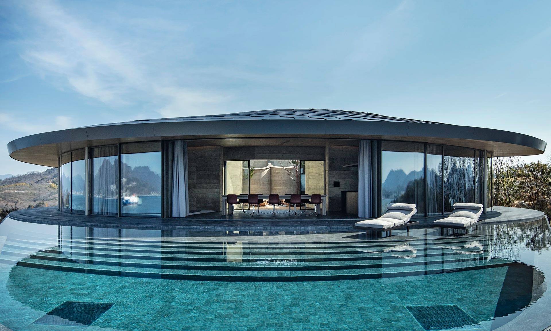V případě vil je možná mnohem zajímavější než jejich design kombinace materiálů. Na zemi je použit kámen jako podlahová krytina procházející až na terasy, stropy jsou obloženy dřevem, na stěnách je často přiznán beton a jako chodníčky je použit kus kamene. Výsledný dojem je zemitý, lehce luxusní, stále útulný, vzdušný a díky svému usazení v krajině neopakovatelný. Projekt pak nefunguje jako hotel ale majitelé si kupují podíl na jednotlivých projektech, kde mohou část roku bydlet.