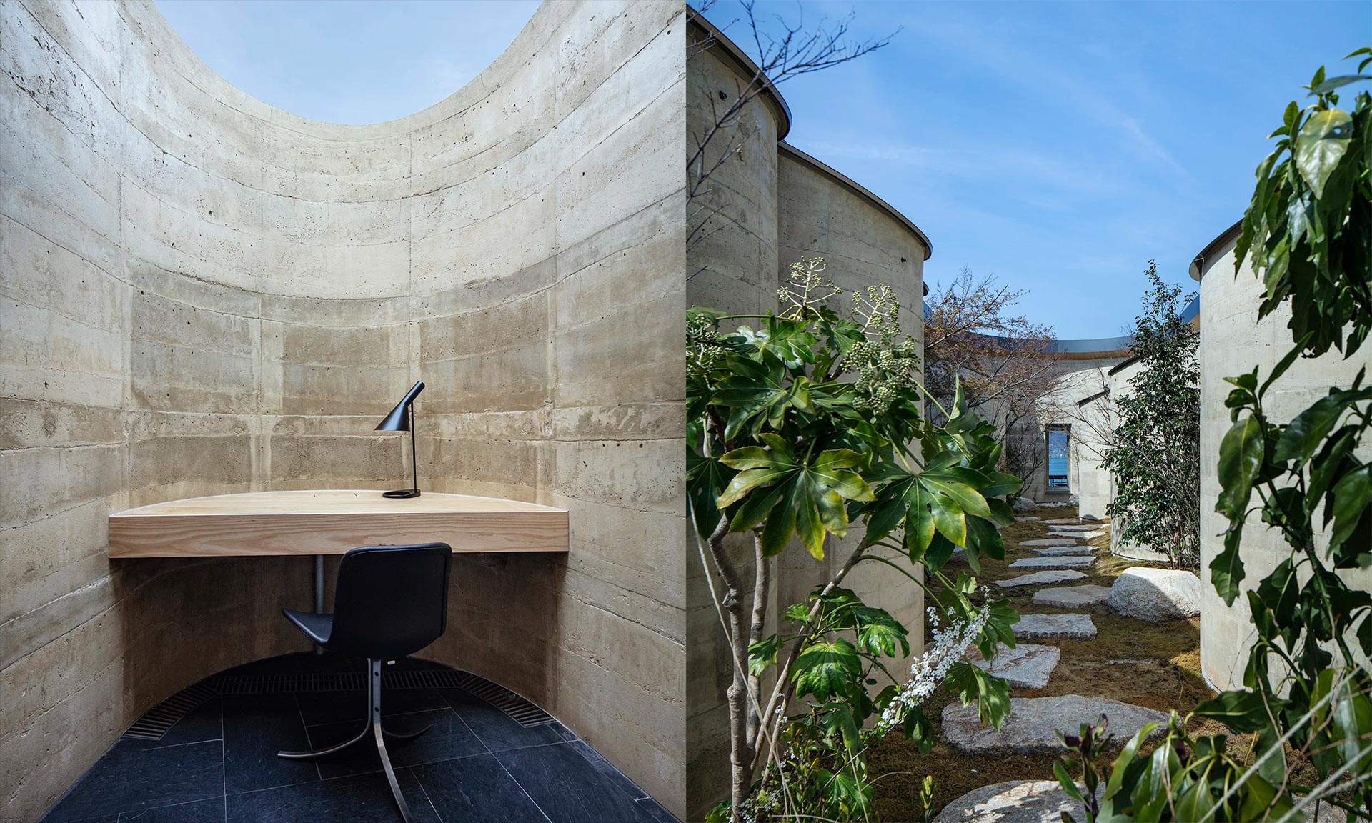 „Vztah mezi skandinávským a japonským designem začal v 19. století, kdy Japonsko otevřelo své hranice mezinárodním cestovatelům. Brzy poté začali skandinávští designéři zemi navštěvovat a rychle se stali fascinováni japonským stylem pro jeho jednoduchost, použití přírodních materiálů a spojení s přírodou – stejnými principy, které vedly designový étos pro Not a Hotel Setouchi. Hlavní plán pro Not a Hotel Setouchi upřednostňuje obnovu zvlněného terénu, kde bude před zahájením výstavby sklizena tráva, zatímco olivovníky, citronovníky a další původní vegetace budou znovu vysazeny, aby dále zdůraznily přírodní krásu místa. Tři vily – pojmenované 360, 270 a 180 v závislosti na umístění a odpovídajících výhledech – záměrně splývají s přírodními obrysy krajiny a přizpůsobují se stávajícím cestám a infrastruktuře. Resort, rozprostřený v různých nadmořských výškách, působí jako stuha vinoucí se areálem,“ uvádí ateliér BIG.