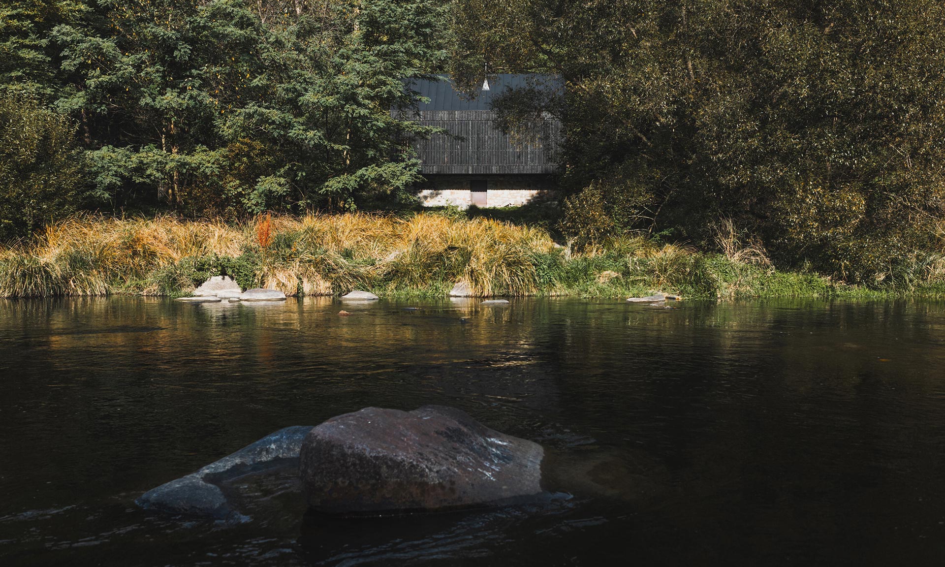 Ve středočeské obci Prosečnice vznikla hned u řeky Sázavy skvěla chata. Na místě původní vyhořelé chaty, konkrétně na její kamenné podezdívce, vzniklo komfortní a do místa zcela patřičné útočiště před každodenním shonem. Jednoduchý tvar chaty se sedlovou plechovou střechou doplňuje dřevem obložená fasáda a velkými okenicemi chránící prostornou terasu od slunce a v neobydlenou dobu celý objekt. Příjemný je i interiér.