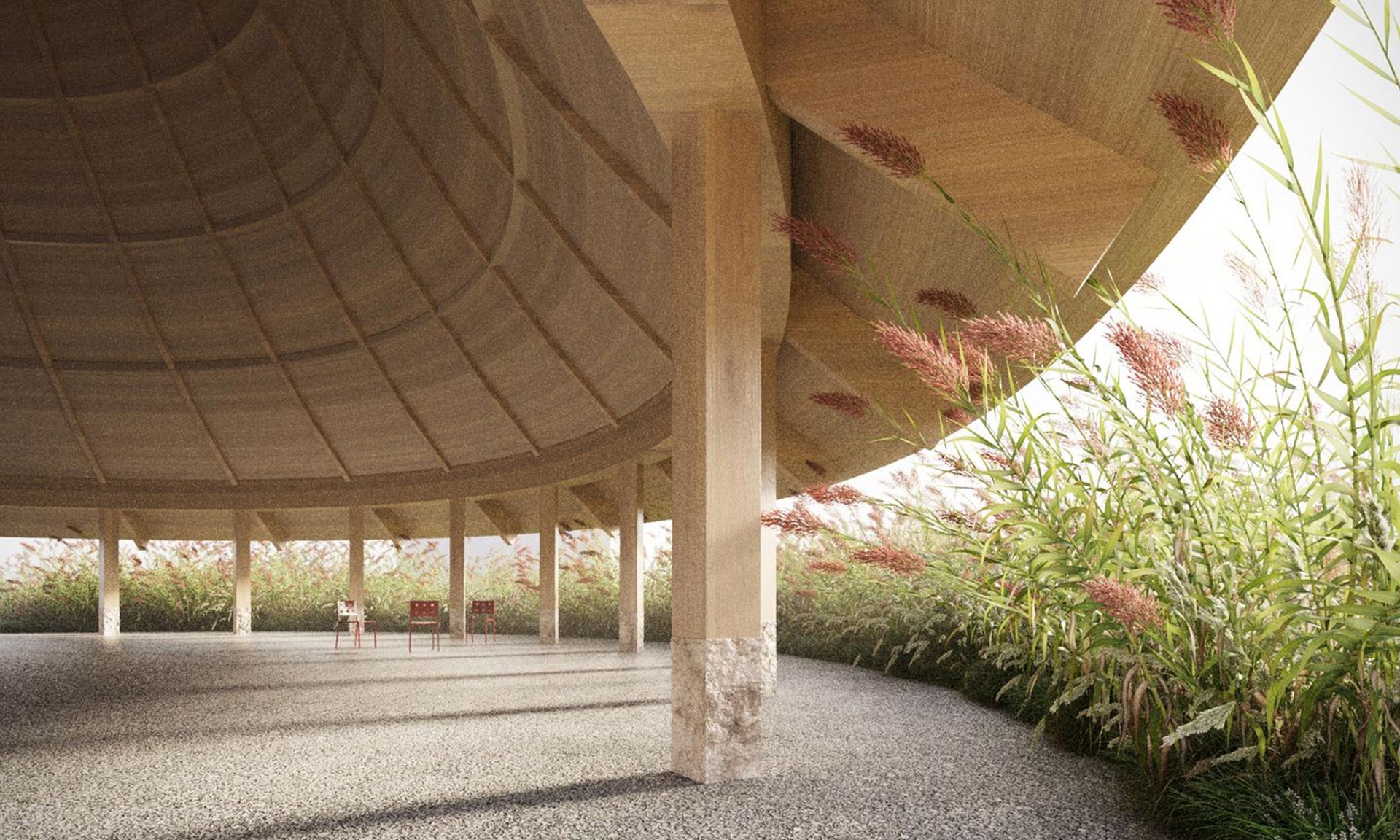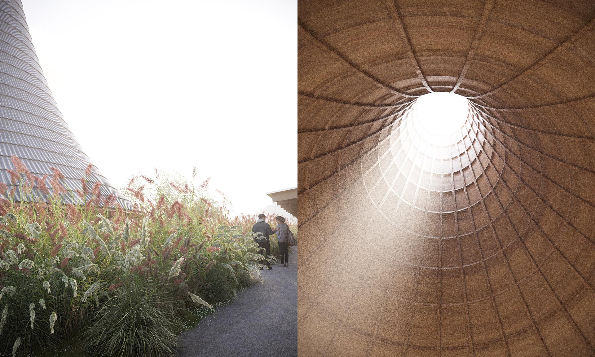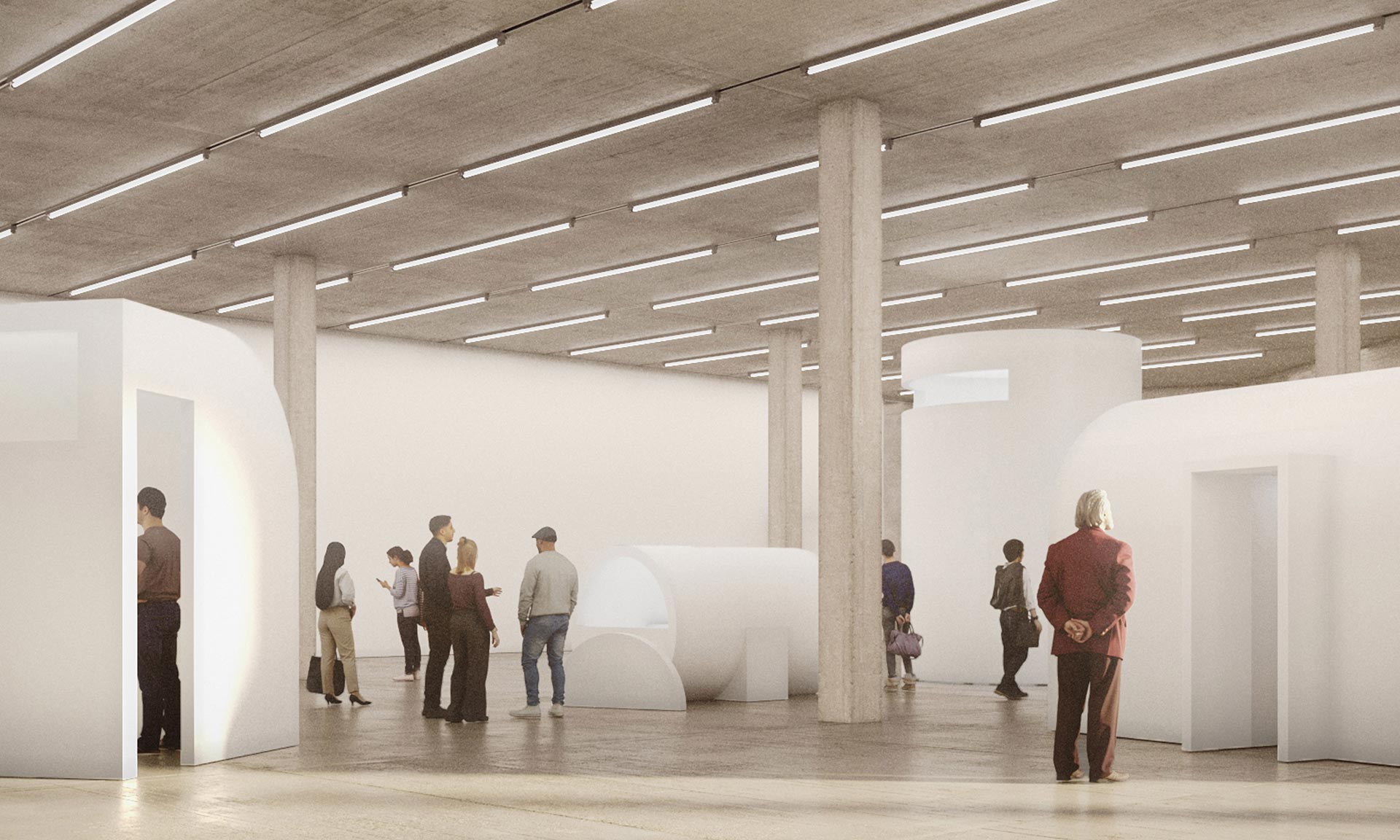 „Návštěvníci vstupují velkou bránou do podzemní haly – prostorného a velmi flexibilního prostoru, který je vhodný pro pořádání výstav, představení, promítání, akcí i společenských setkání. Jeho prostorová otevřenost v kombinaci s orientací dovnitř navozuje silný pocit soustředění a ponoření se do dění. Na této úrovni jsou prakticky integrovány parkovací plochy, sklady a zázemí, zatímco technické prostory se nacházejí o patro níže. Kancelářské prostory zabírají mezipatro mezi výstavní halou a zahradou nad ní, osvětlené střešním oknem. V zadní části haly zajišťují dvě schodiště přímé spojení mezi výstavní a zahradní úrovní,“ dodávají s tím, že součástí návrhu je i projekt bujaré zahrady, která je neodmyslitelnou součástí projektu.
