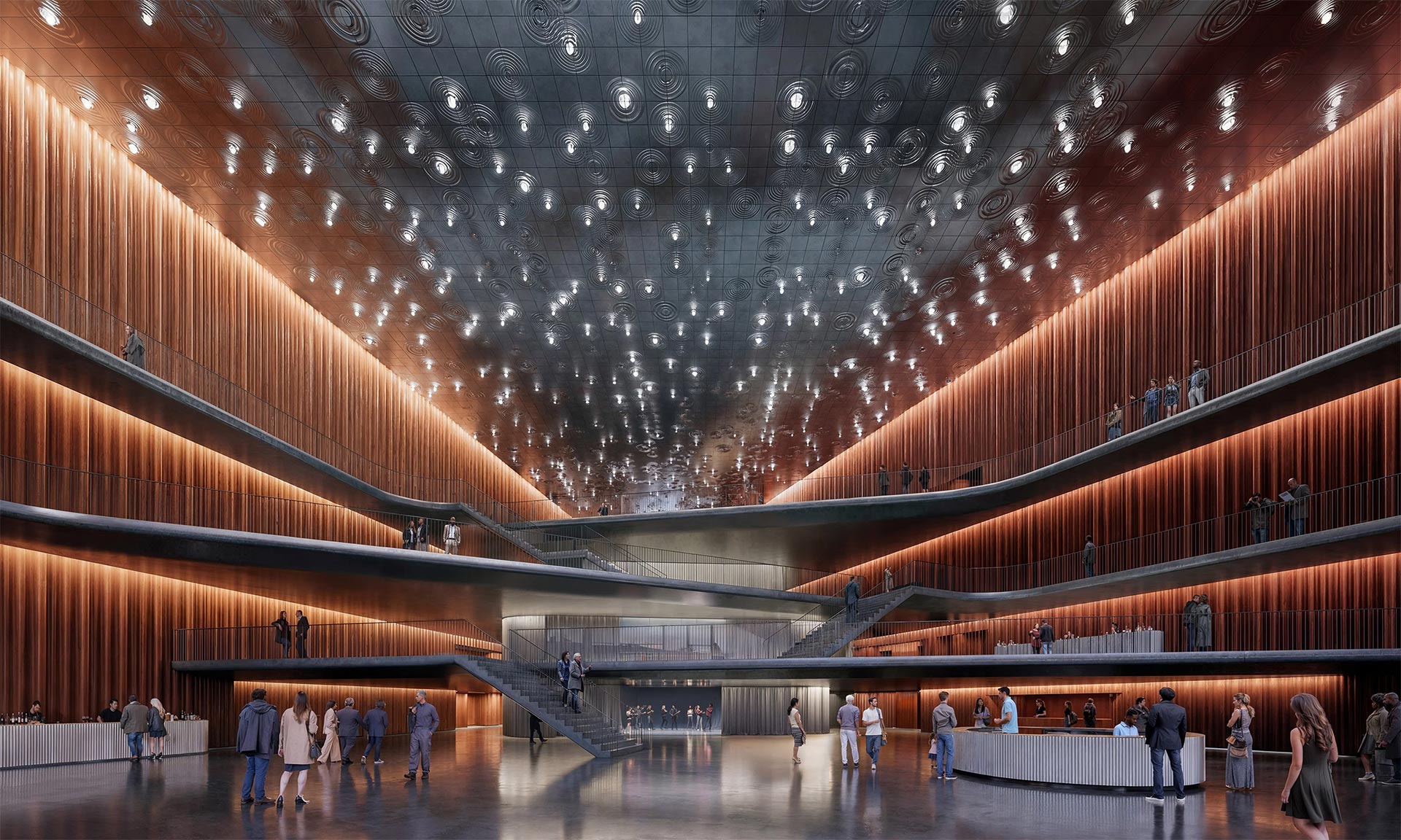„Nové Tennessee Performing Arts Center – navržené studii BIG a William Rawn Associates společně s Hastings Architecture – rozšiřuje vitalitu centra Nashvillu přes řeku Cumberland a stává se kulturní kotvou pro nově oživený východní břeh města. Nové centrum, navržené tak, aby vítalo komunitu ze všech stran s performančními prostory seskupenými v jeho jádru, podporuje řadu uměleckých programů a zároveň staví na bohatém uměleckém odkazu Nashvillu. Zahájení výstavby se očekává v roce 2027 s plánovaným otevřením v roce 2030. Nové centrum se nachází na nábřeží v sousedství Cumberland Parku a stadionu Nissan týmu Tennessee Titans a zahrnuje čtyři performanční prostory: víceúčelové divadlo Grand Broadway, sál pro tanec a operu, flexibilní studiové divadlo (black box) a komorní kabaretní prostor. Součástí jsou také zkušebny a učebny. Jakmile se TPAC přesune ze svého současného místa v centru, bude toto centrum o rozloze 28 500 metrů čtverečních sloužit jako nový domov pro Nashville Ballet, Nashville Opera a Nashville Repertory Theatre, přičemž vytvoří zázemí pro hostující představení z Broadwaye, taneční vystoupení a komunitní akce,“ uvádí k projektu architekti z BIG.
