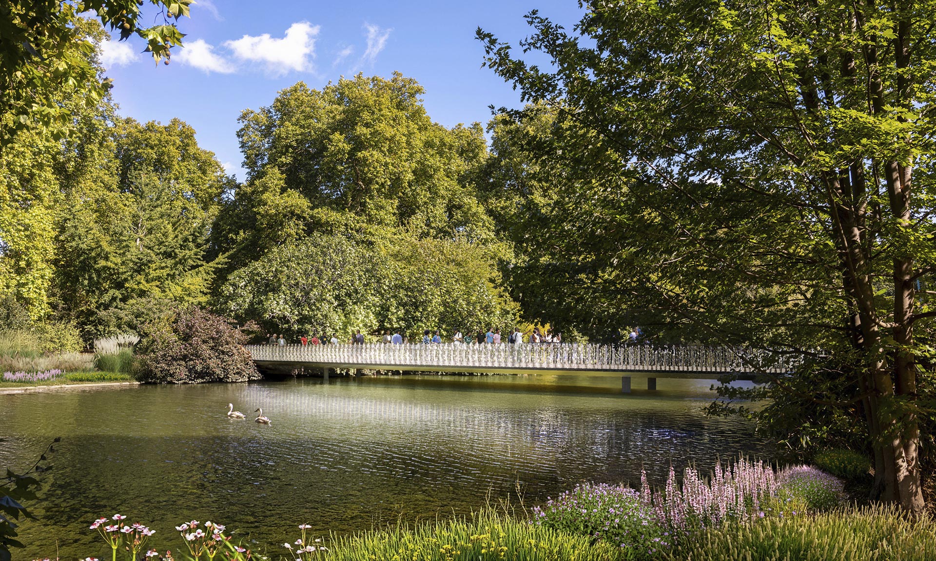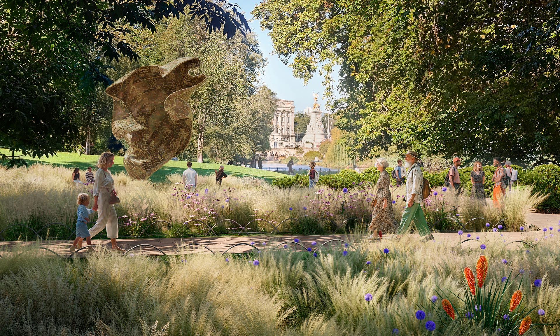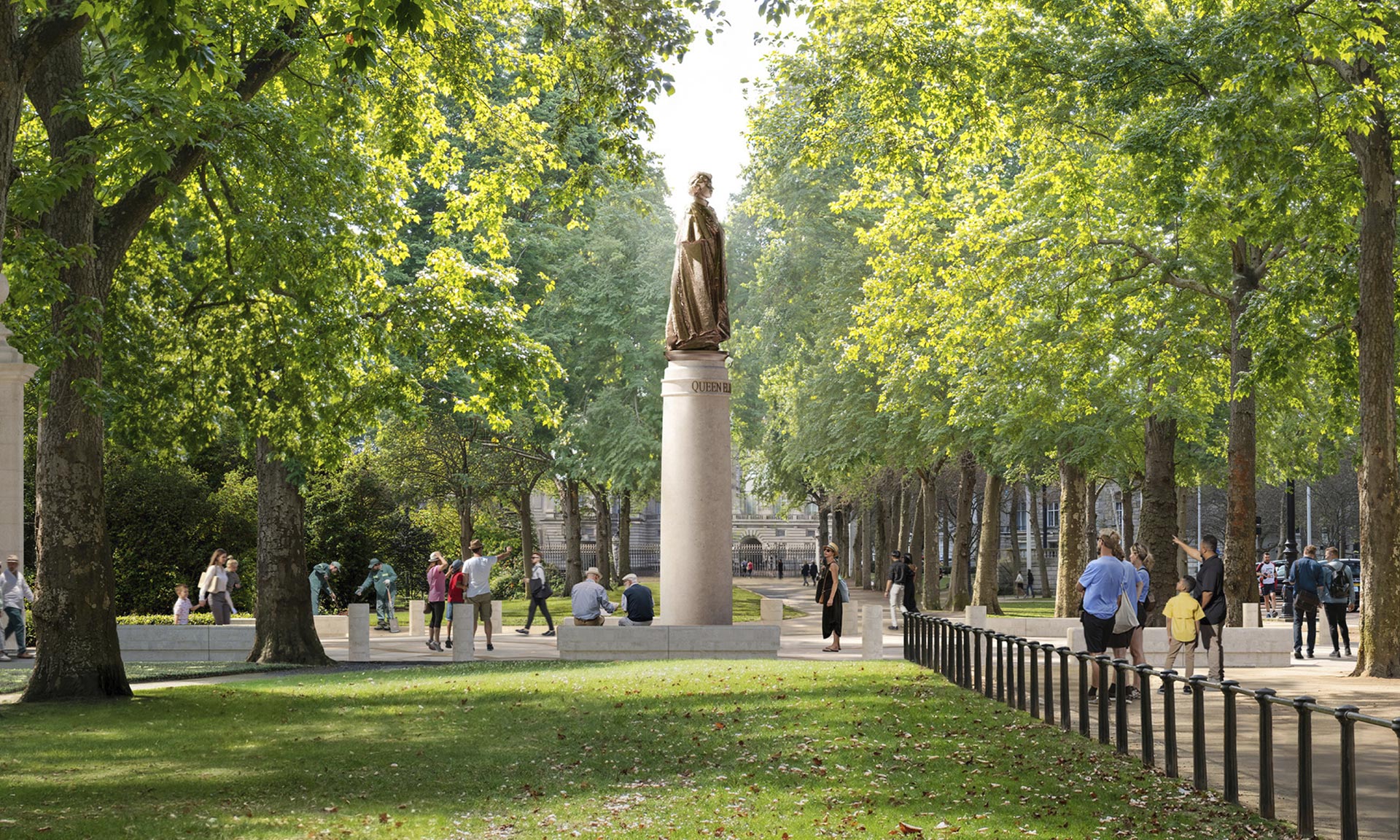 „Součástí trvalého památníku budou: nový most z litého skla inspirovaný čelenkou Fringe Tiara královny Marie, kterou měla na sobě královna Alžběta v den své svatby; busta královny Alžběty v pokročilém věku od sochařky Karen Newmanové; socha The Commonwealth Wind Sculpture, nové abstraktní dílo od Yinky Shonibareho; a kompas navržený Normanem Fosterem, který slouží jako orientační bod pro národy Společenství národů. Součástí návrhu jsou také zahrady věnované Společenství národů a národům Spojeného království, které vytvářejí prostory pro odpočinek a rozjímání,“ dodávají k projektu architekti.