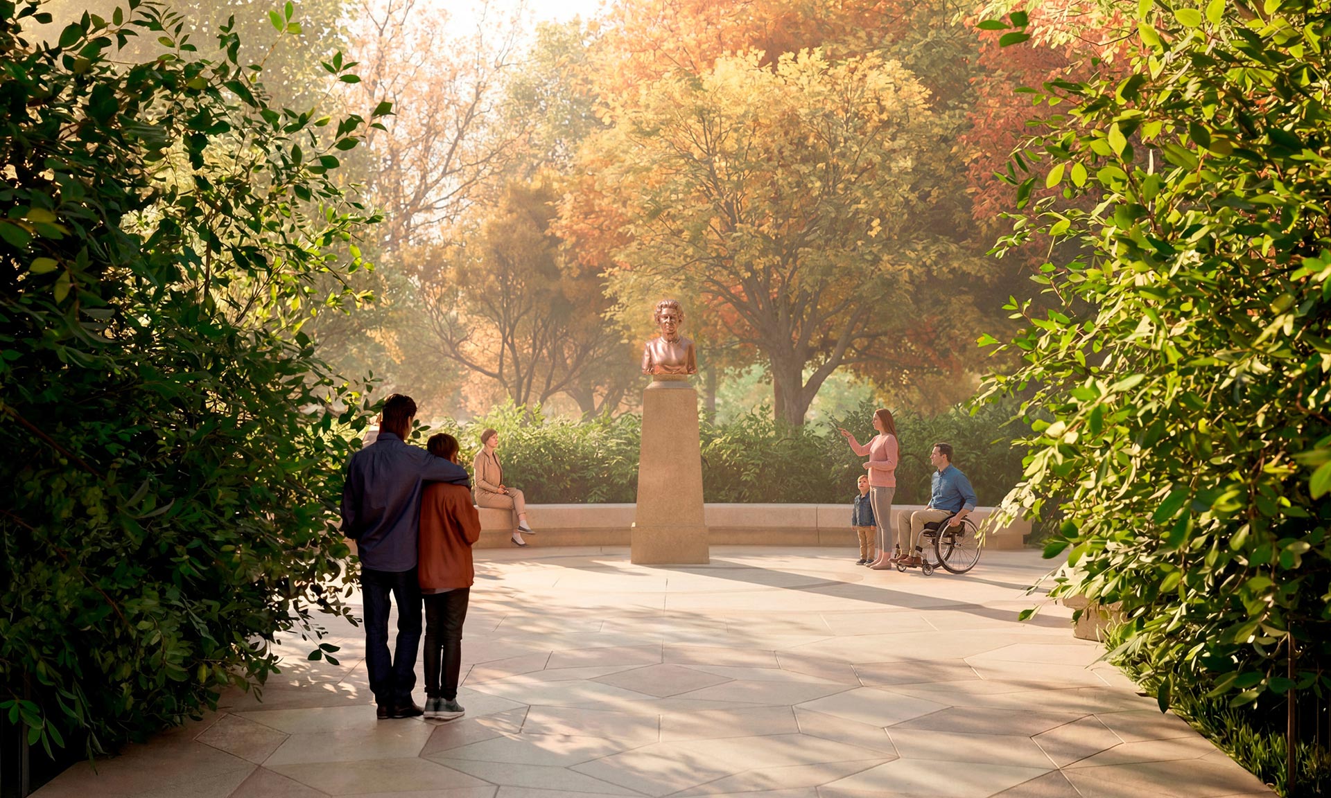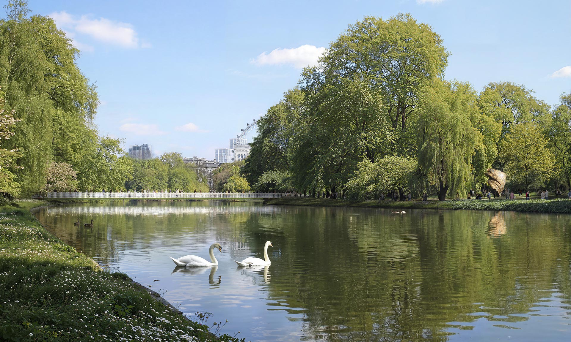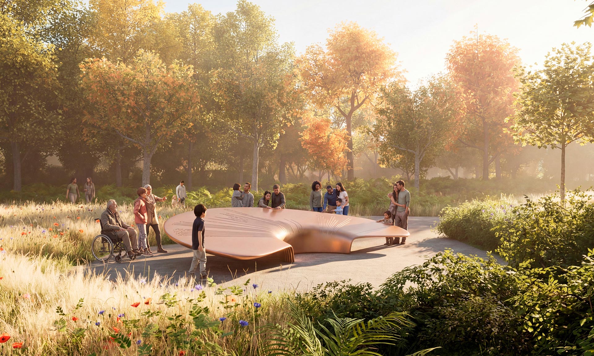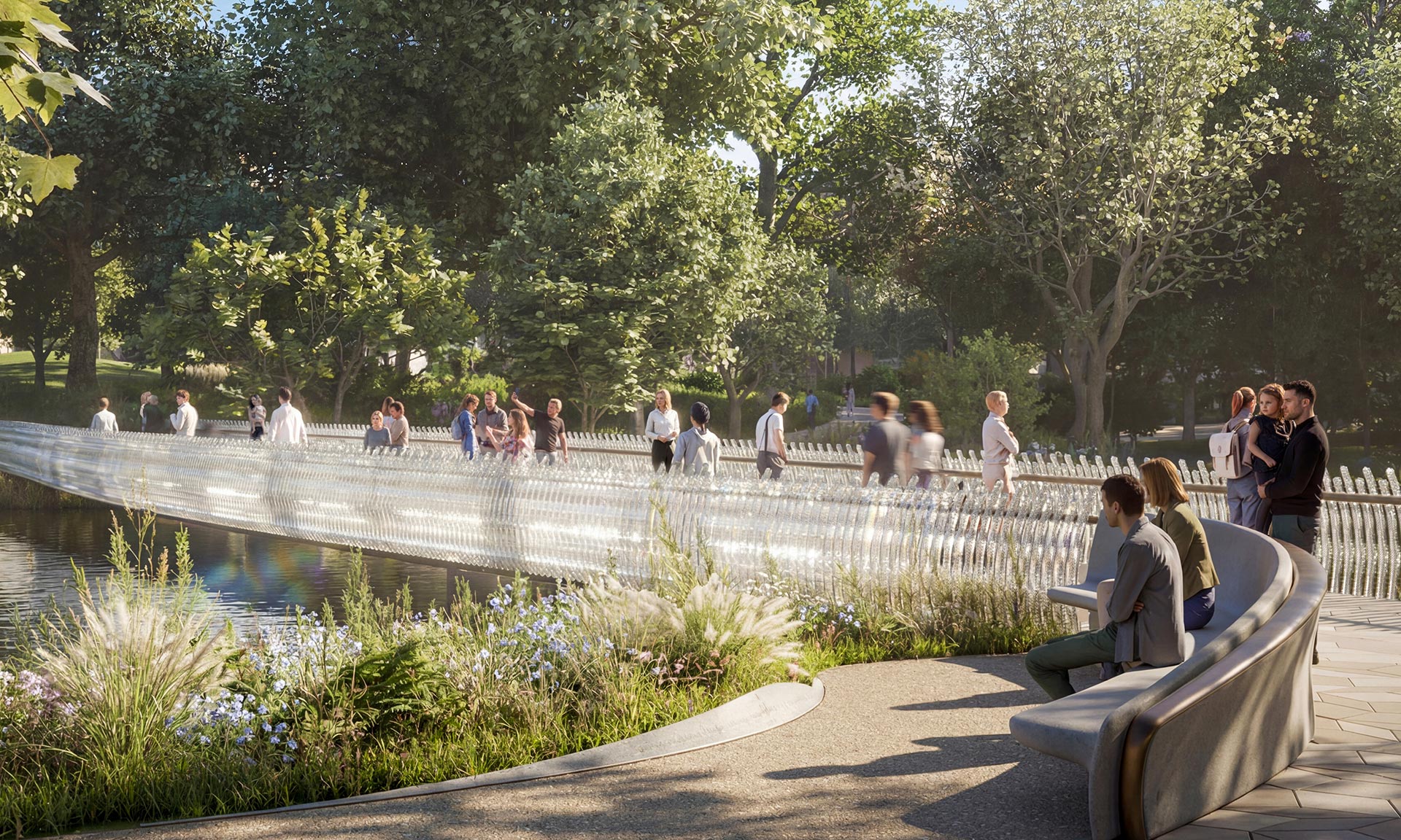 „Součástí trvalého památníku budou: nový most z litého skla inspirovaný čelenkou Fringe Tiara královny Marie, kterou měla na sobě královna Alžběta v den své svatby; busta královny Alžběty v pokročilém věku od sochařky Karen Newmanové; socha The Commonwealth Wind Sculpture, nové abstraktní dílo od Yinky Shonibareho; a kompas navržený Normanem Fosterem, který slouží jako orientační bod pro národy Společenství národů. Součástí návrhu jsou také zahrady věnované Společenství národů a národům Spojeného království, které vytvářejí prostory pro odpočinek a rozjímání,“ dodávají k projektu architekti.