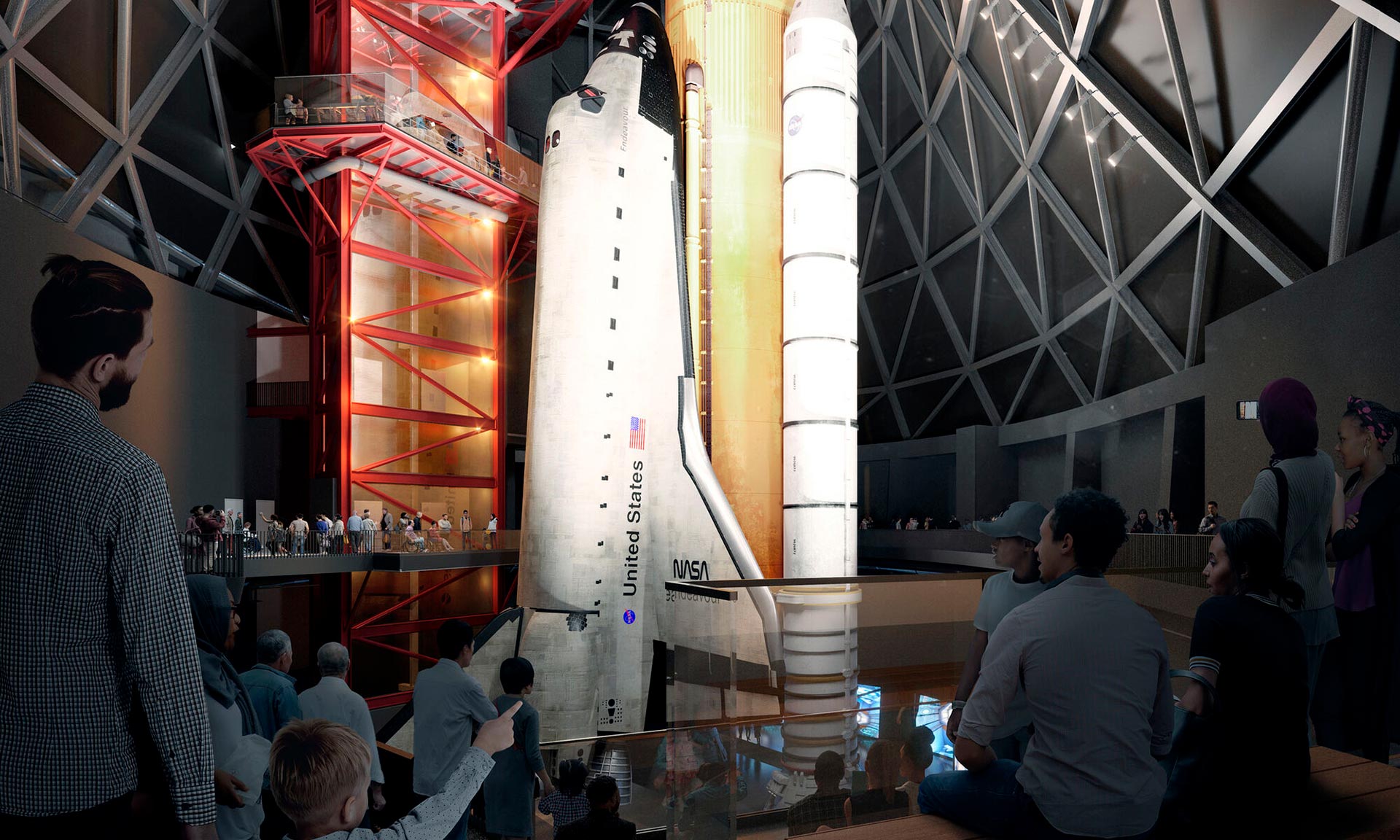 „Hlavní atrakcí Air and Space Center bude raketoplán Endeavour, který byl součástí programu průzkumu vesmíru v letech 1992 až 2011 a který byl nadaci California Science Center Foundation darován agenturou NASA. Raketoplán Endeavour bude vystaven s kompletním raketoplánovým systémem, jako by byl připraven ke startu, spolu s dalšími exponáty, které zkoumají principy vědy, technologie, inženýrství a matematiky související s programem raketoplánů, stejně jako interaktivní vědecké exponáty, zážitkové expozice a historické letecké a kosmické artefakty. Po dokončení bude toto místo jediným místem na světě, kde se veřejnost bude moci zblízka seznámit s raketoplánem v pozici pro start,“ uváděli před dokončením stavby k projektu architekti.