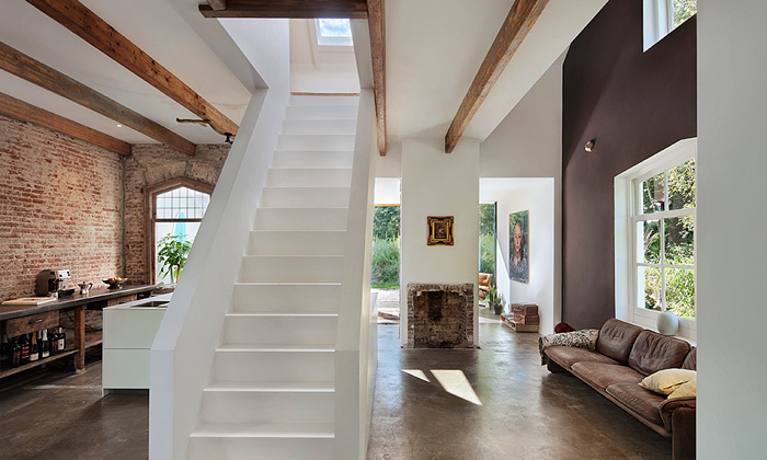 Zecc se tedy postarali o stavební úpravy. Odstranili pozůstatky mnoha dřívějších změn, hlavní dům zcela očistili a přiznali cihlové zdivo dekorované jen několika liniemi. Kovový přístavek na obou stranách domu s efektní zrezavělou fasádou pochází již z dřívějška, jen byl zjemněn několika prosklenými plochami, jež otevírají dům do zahrady.