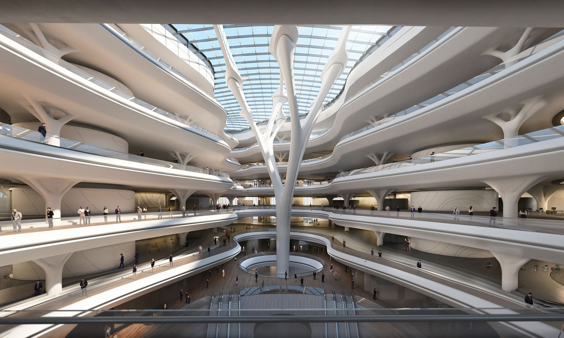 Sklo, beton a ocel v kombinaci s ladnými křivkami a propojením jednotlivých hmot působí velmi elegantně. Užitná plocha objektu má být 262 000 metrů čtverečních. Dominantní bude velká vstupní hala s efektní průhledem skrze všechna podlaží. Pomyslné údolí bude zdobeno organicky tvarovanými sloupy a zaoblenými okraji jednotlivých podlaží. Denní světlo bude dodáváno skrze prosklenou střechu. K budově bude náležet zelený pozemek. Postaveno by mělo být do tří let.