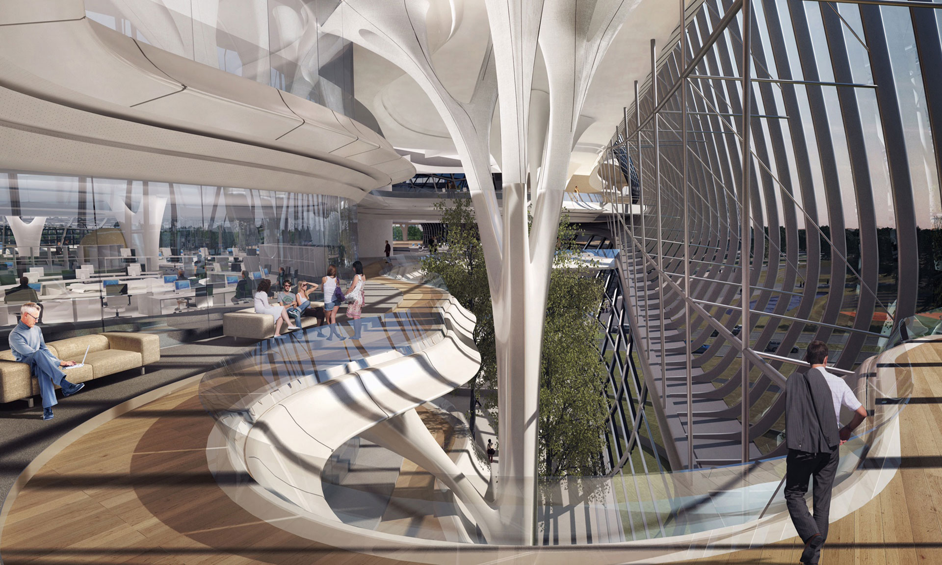 Na západním okraji ruského hlavního města vyroste v oblasti Skolkovo Innovation Centre futuristické Sberbank Technopark. Těsně před svou smrtí budovu navrhla Zaha Hadid s Patrikem Schumacherem ze britského studia Zaha Hadid Architects. Organicky tvarovaná z velké části prosklená budova bude centrem vývoje a inovací.