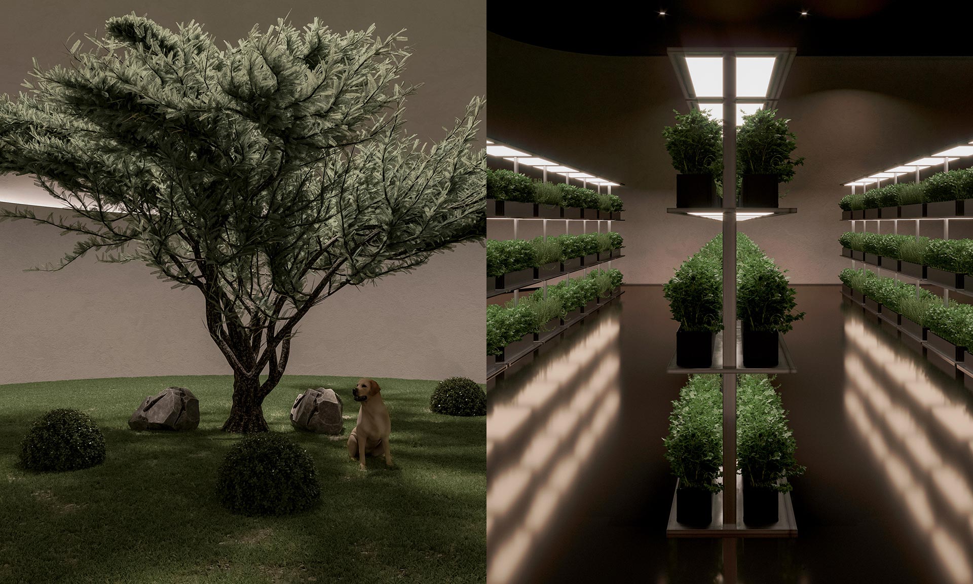 To hlavní se však ukrývá vevnitř. Pokud projdete dezinfekční místností dostanete se po točitých schodištích nebo výtahem do podzemí, které je samozřejmě celé betonové pro případ větší katastrofy než jen viry. V podzemí najdete luxusní bydlení, které má suplovat pobyt na povrchu. Velkorysé prostory jsou vybaveny světlovody s umělým světlem a menšími zahradami. Suplují je místy projekce přírody.