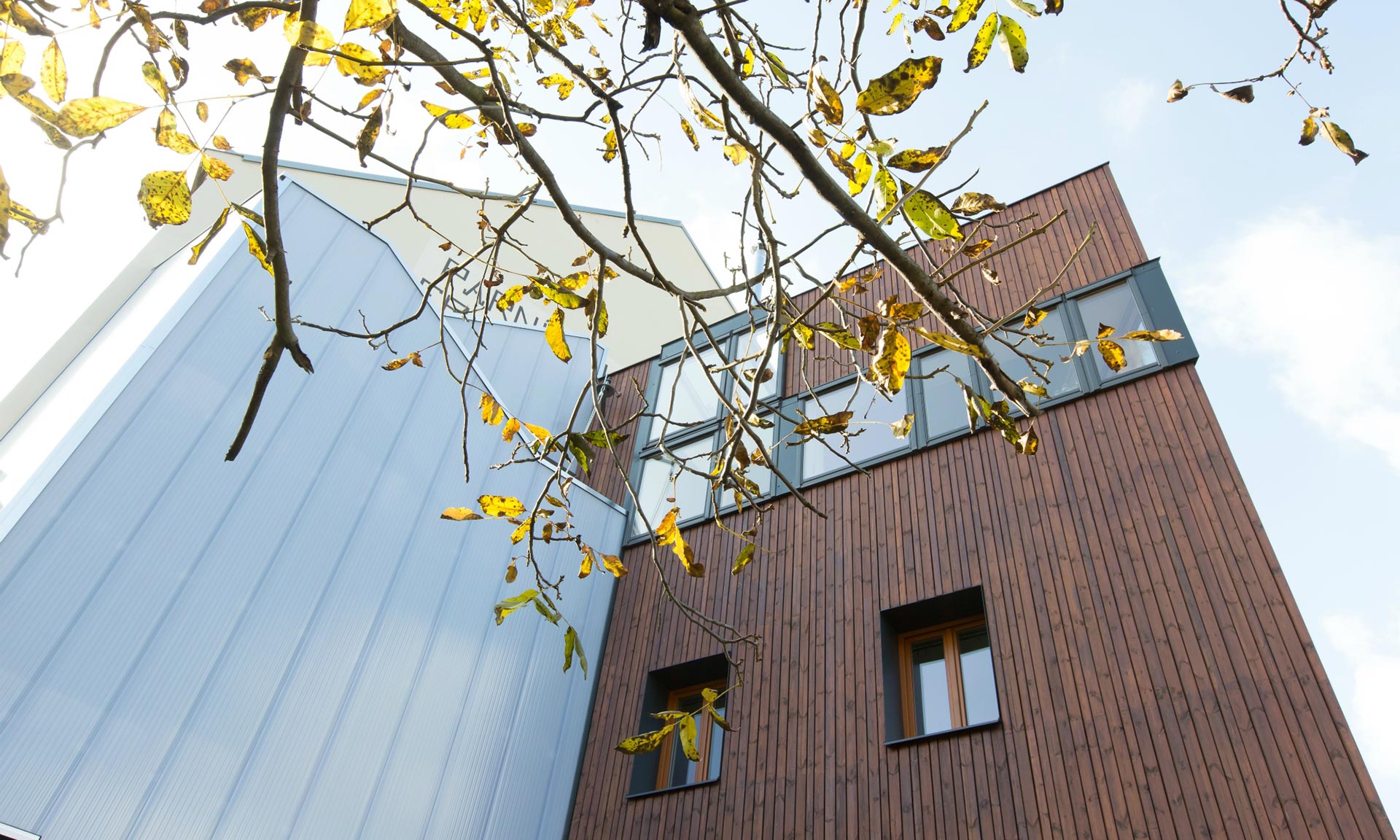 „Přes střechy původní zástavby starých Hlubočep se otevírá drama skalních stěn a pražského semmeringu vysoko na úbočí protějšího svahu, včetně úžasného viaduktu přes údolí. Kvůli tomuto výhledu jsme umístili obytný prostor v nejvyšším patře a volné stěny jsme prořízli horizontálním oknem na jednom konci zakončeným směrem dolů výkladcem s předsazeným velkým truhlíkem zavěšeným nad ulici, na druhé straně směrem nahoru s překlopením do střešního okna. Zde jsme vytvořili místo pro setkání rodiny – jídelní stůl. Jednotlivá patra jsme propojili přidaným schodištěm podél sousedova štítu a opláštili velkoformátovými polykarbonátovými mléčnými panely. Průsvitná fasáda dává domu zvnějšku úžasnou atmosféru, zvláště večer, a prostoru schodiště nádherné světlo, hlavně pro knihovnu na protější straně schodiště. Schodiště se tak stalo další obytnou místností,“ dodávají k rekonstrukci domu, který si za své řešení vysloužil nominaci na Českou cenu za architekturu.