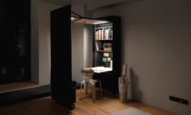 Pokud tedy nemáte dostatek místností pro vlastní pracovnu můžete využít skládací velmi propracovaný kus nábytku, kam je možné zavřít a případně i zamknout práci. Designéři cílili na lidi pracující u počítače nebo ty, kteří potřebují jen menší stůl. Z ploché nenápadné skříně je možné vysunout záda s přístřeškem, stropní osvětlení a zpřístupnit pracovní stůl, přihrádky na odkládání věcí a další užitečné funkce.