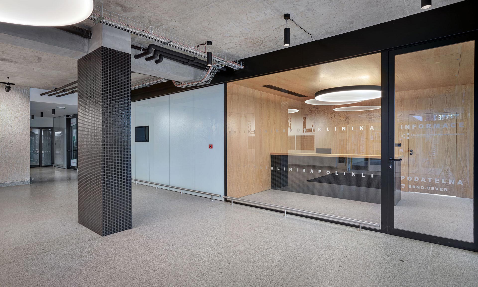 V loňském roce proběhla velká rekonstrukce Polikliniky Lesná v Brně, která navázala na rekonstrukci obvodového pláště budovy. Výrazně omlazen byl prostor hlavního vstupu, propojení s donedávna oddělenou pediatrickou částí i další prostory. Interiér opticky zahřívá dřevo s tyrkysovou mozaikou. V části nechali architekti působit surové materiály.