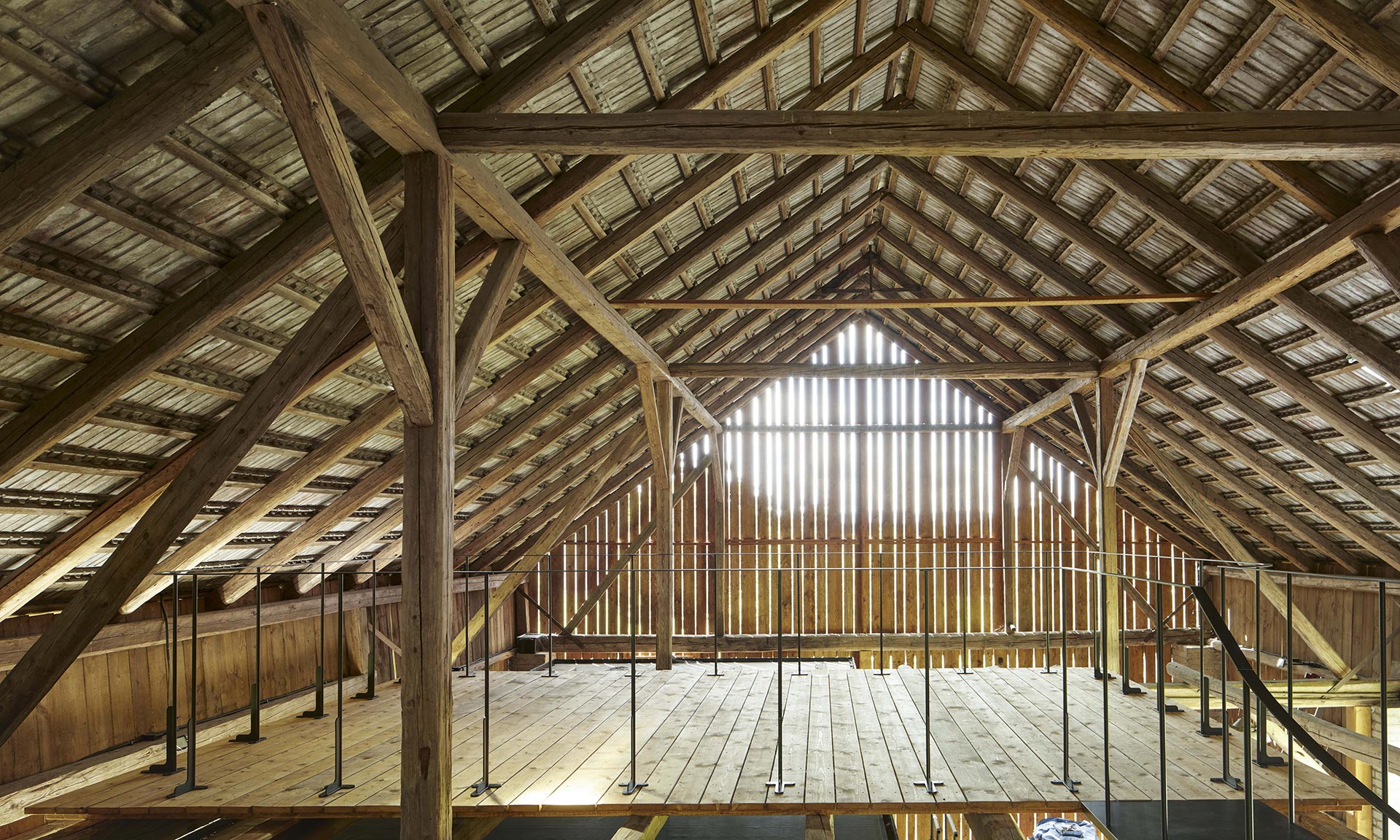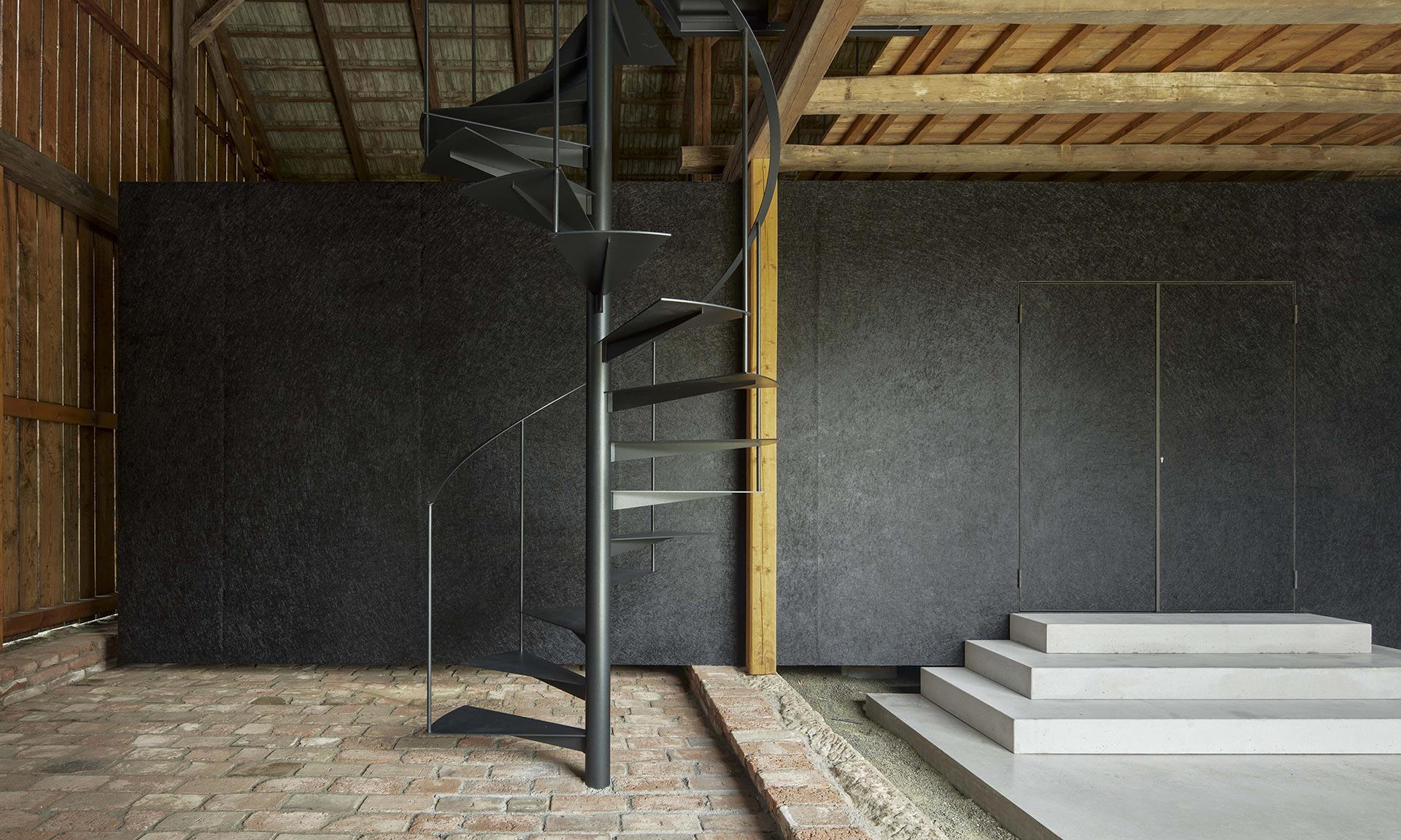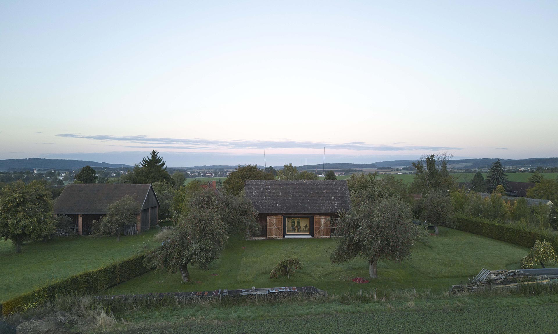 „Navrhli jsme malou jednotku pro sezonní pobyt vestavěnou do stodoly u venkovské usedlosti. Volně vložená dřevostavba ve formě kvádru je zabalena do černé asfaltové obálky. Samotná stodola si zachovává původní podobu a se zavřenými vraty a bočními okenicemi nic nenasvědčuje tomu, že se uvnitř nachází nový objekt. Jen do dvora přesahuje betonový koberec, který se po otevření vrat dál rozprostírá přes prázdnou polovinu stodoly až k monolitickým stupním před vstupem,“ říká architekt Matěj Nepustil.