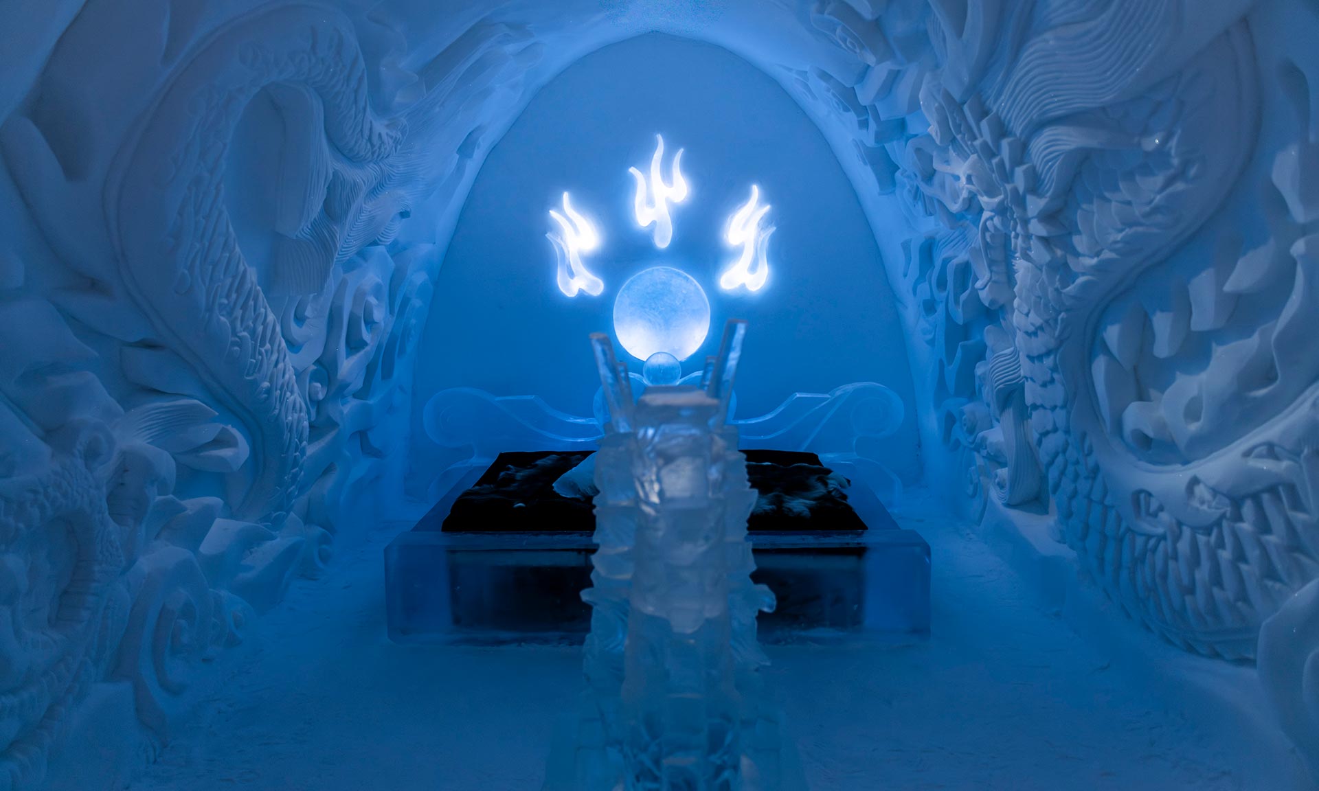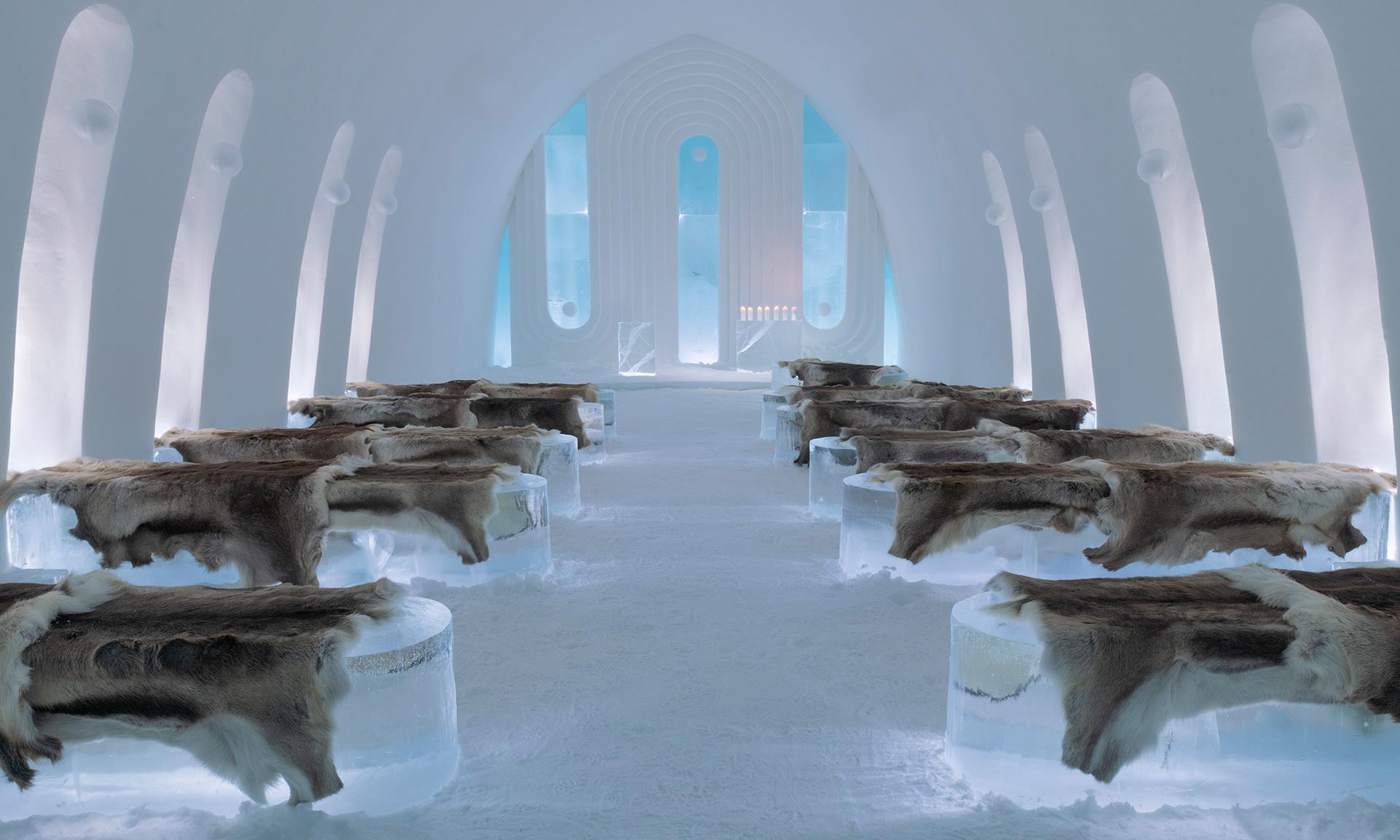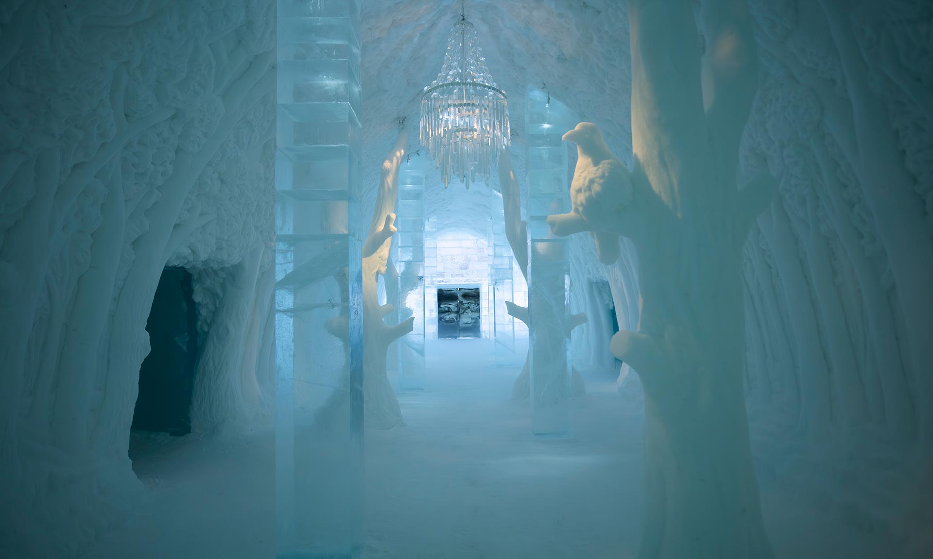 „Po vstupu do ikonických dveří Icehotelu se hosté ocitnou v 30 metrů dlouhé hlavní hale Cathedral Grove, kde se až ke stropu táhne třpytivý les ledových korun stromů. V obřadní síni Echo si mohou svatební páry říct své ano a návštěvníci jsou vítáni, aby se posadili mezi umělecká díla a v tichosti si vychutnali jejich krásu a ticho,“ uvádí provozovatelé hotelu, kteří každoročně z řeky Torne vytěží stovky tun ledu pro stavbu hotelu.