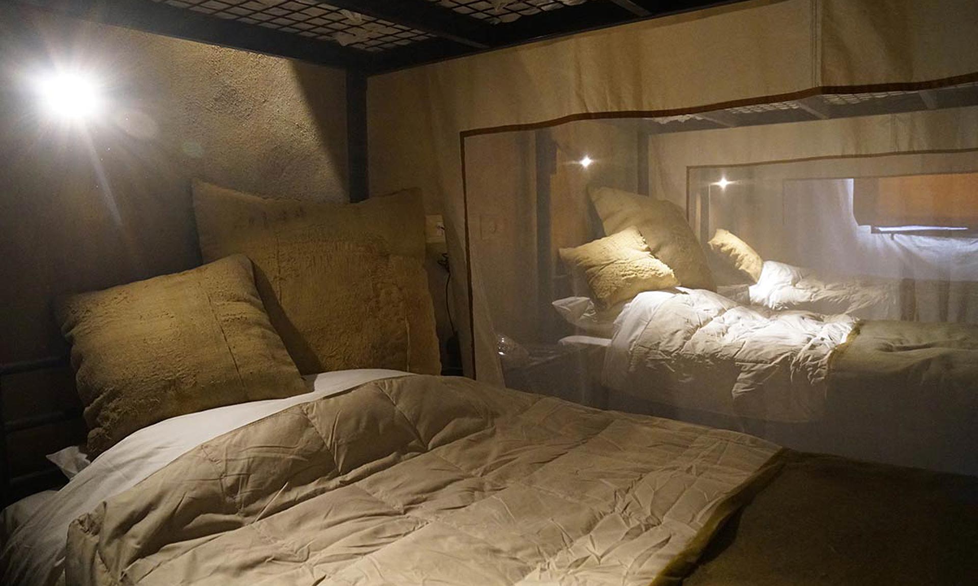 Nejhorší ubytování má název Budget a za nemalých 70 dolarů za noc, tedy asi 1 500 českých korun, budete spát na vyřazených postelí z kasáren. Ve výbavě najdete skříňku na věci, osobní trezor, společnou koupelnu a špunty do uší. V ceně je i návštěva místní galerie s Banksyho díly, možnost nákupu knih v knihkupectví, návštěvu muzea nebo posezení v jednom ze dvou barů. Piano Bar je laděn do roku 1917 a to do doby kdy Britové ovládli Palestinu. Do místního designu je pak oděn nový The Sahara Bar.