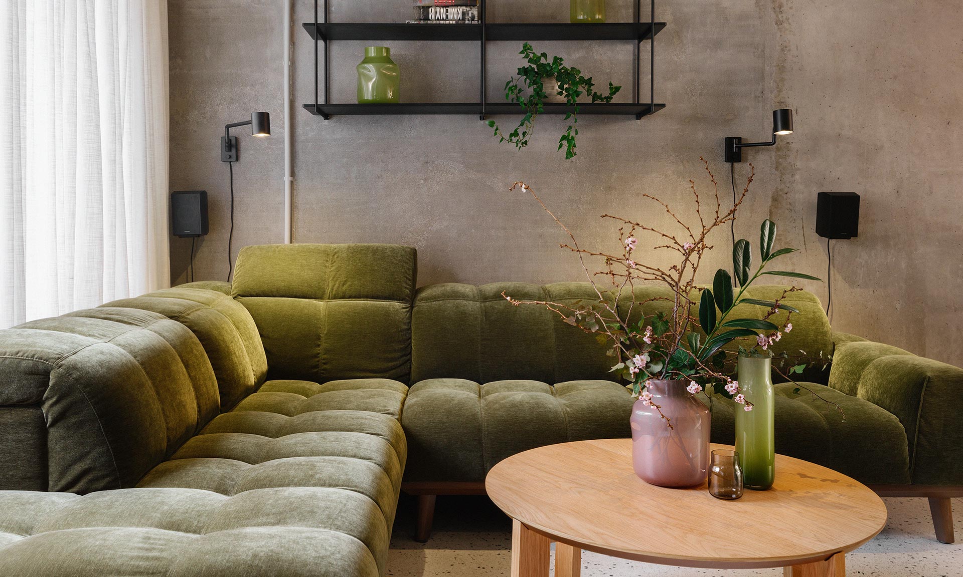 „Hlavní obytný prostor se zvětšuje a částečně propojuje s další místností – toho je dosaženo odstraněním příčky mezi oběma místnostmi, zároveň však v nové (posunuté) poloze vzniká příčka nová, skleněná, z Copilitů. Tvárnice ze stavebního skla světelně a do jisté míry i opticky propojují obě místnosti, zároveň však umožňuji oddělení a soukromí pro zmíněný úkryt, který by měl sloužit jako pracovna a prostor pro cvičení. Naturální vzhled betonu, který je uvažován na dvou stěnách, se propojuje s přirozeně zelenkavou barvou skla copilitových tvárnic a společně tak vytvářejí dojem vody a skály, pro nás vodopádu ve skalách. Tento dojem přírodního výjevu je dotvořen a umocněn použitím množství pokojových květin, barevné škály a jemnými tvary,“ uvádí autorka interiéru Iva Hájková.