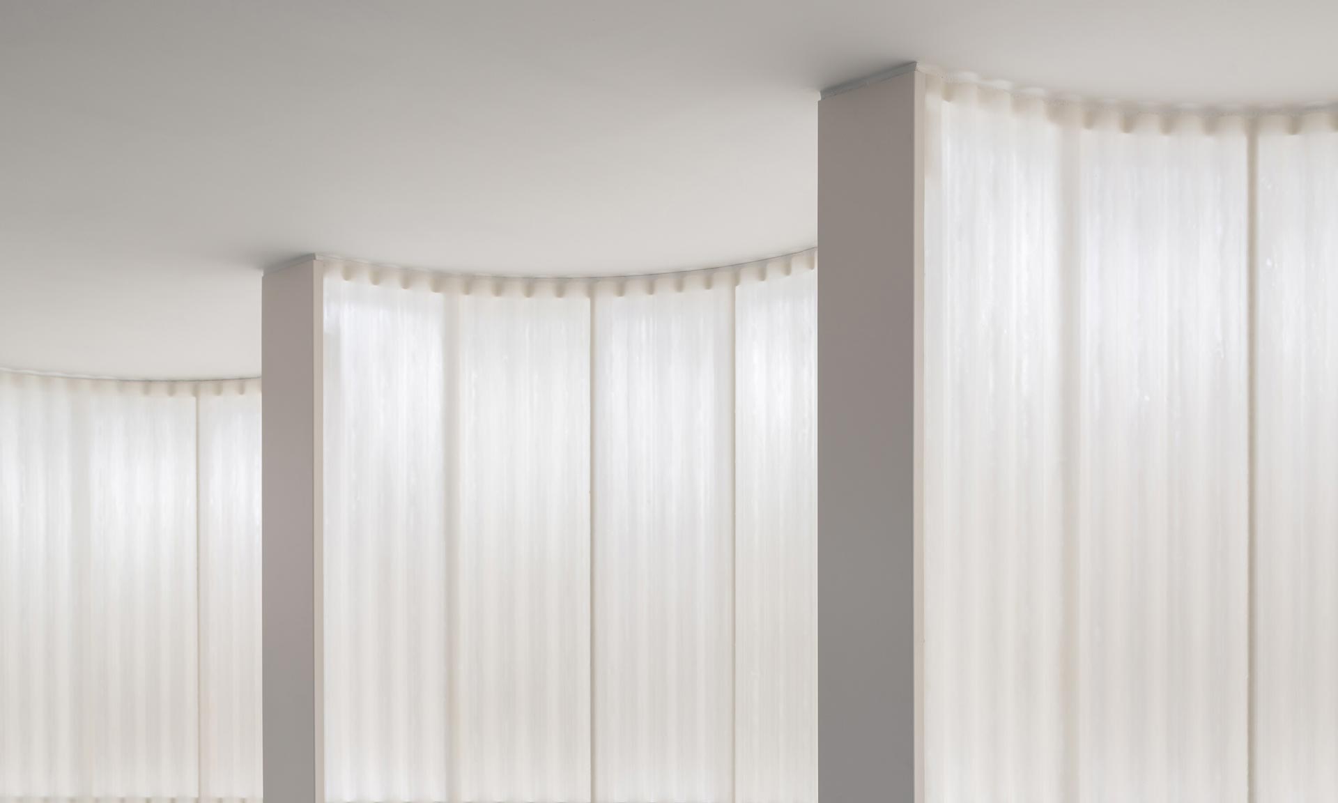 „Do divadla na hraně stínohry, poháněného podsvíceným sklolaminátem na vnitřních příčkách stejně jako pracovními světly jednotlivých stanic — spotlighty na jednotlivé hvězdy představení. Prostor je světlem doslova zakřiven a jeho reálné rozměry mizí. Světlo je hmotou i materiálem zároveň. Ostatní materiály a barvy ustupují do polohy hřejivé jednoduchosti a světlých tónů. Hapticky výrazné prvky, jako je čalounění či dřevo, jsou vyhrazeny těm částem interiéru, které přímo slouží nebo se prezentují klientům. Paleta podtrhuje péči o prostor a pohodlí návštěvníka — hodnoty, které klient vnímá jako nedílnou součást služby chápané jako celostní zážitek,“ dodávají.